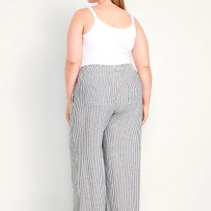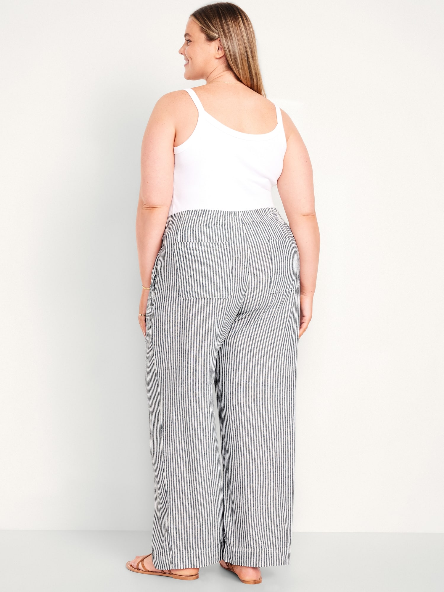 High-Waisted Linen-Blend Wide-Leg Pants: elastic-drawstring high waistband, on-seam hip pockets, super wide leg, easy pull-on style, online exclusive, #683345