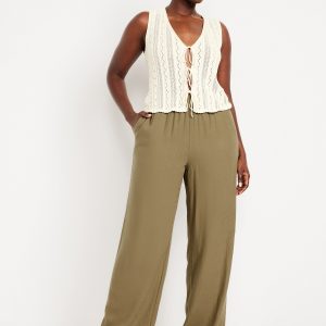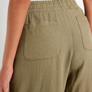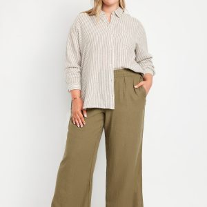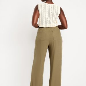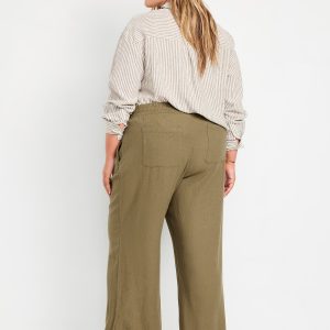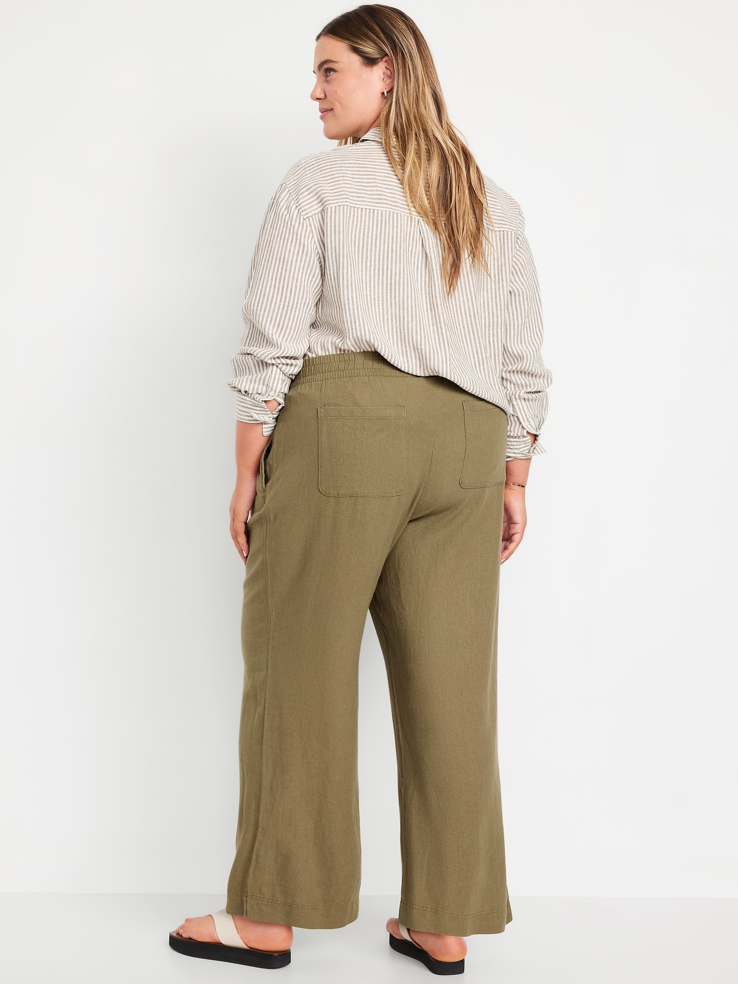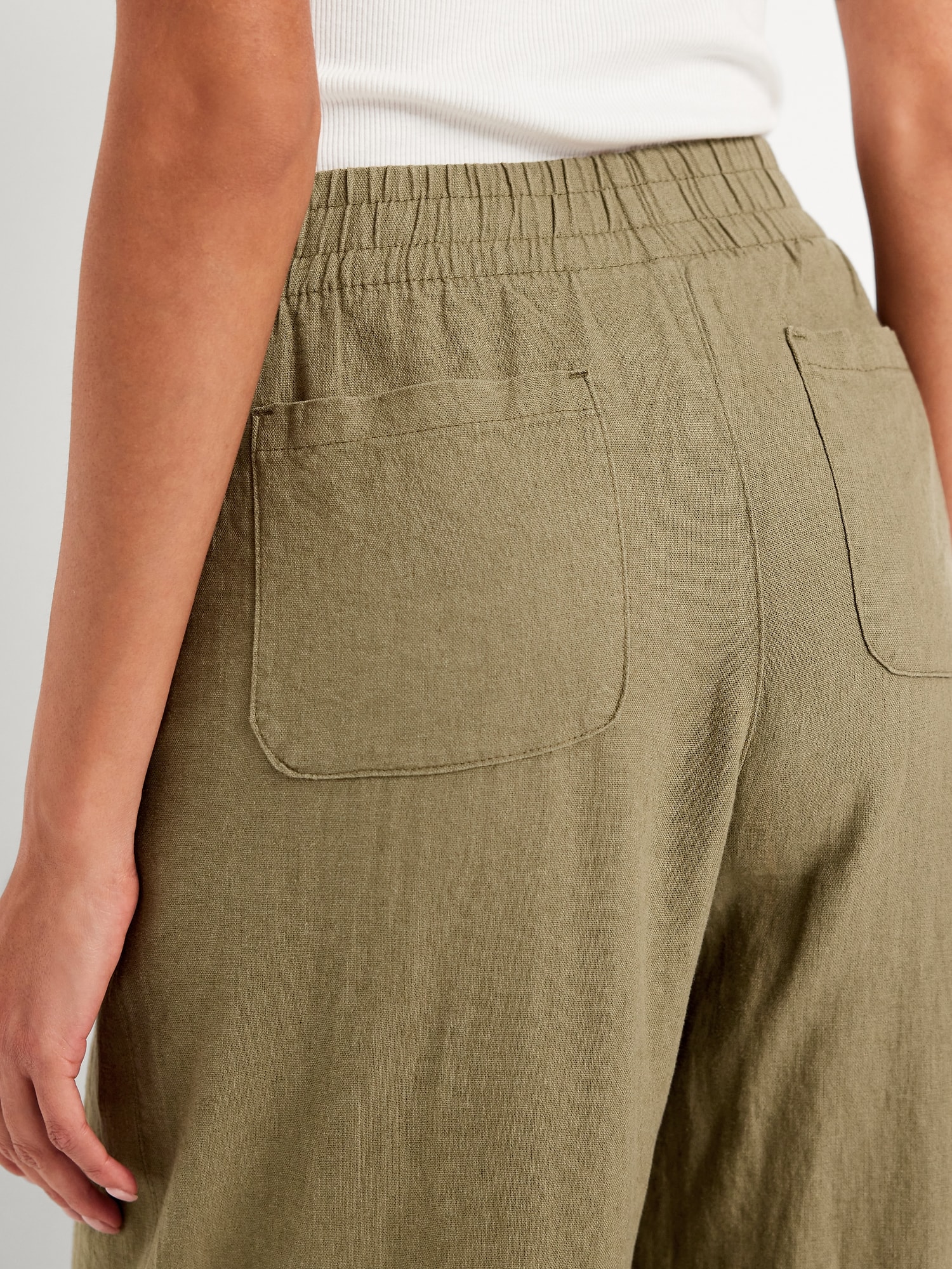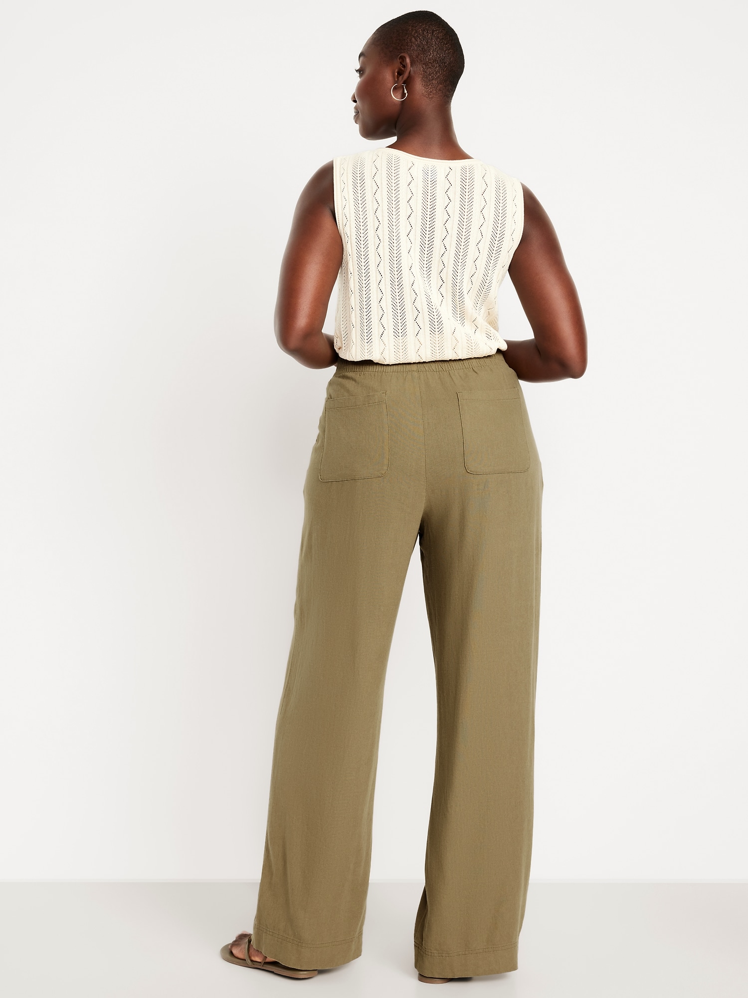 High-Waisted Linen-Blend Wide-Leg Pants: comfort elastic-drawstring waist, side-seam pockets, wide leg, vertical striped print, pull-on style, #766295