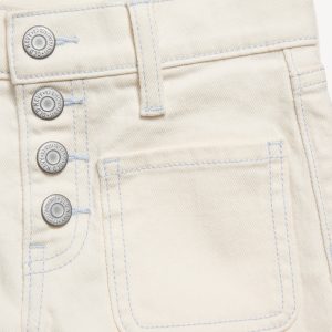 High-Waisted Mariner Midi Jean Shorts for Girls: high rise, sizes 5-8 snap-button closure, sizes 10-20 regular button closure, three-button fly, front mariner pockets, patch pockets at back, #704516