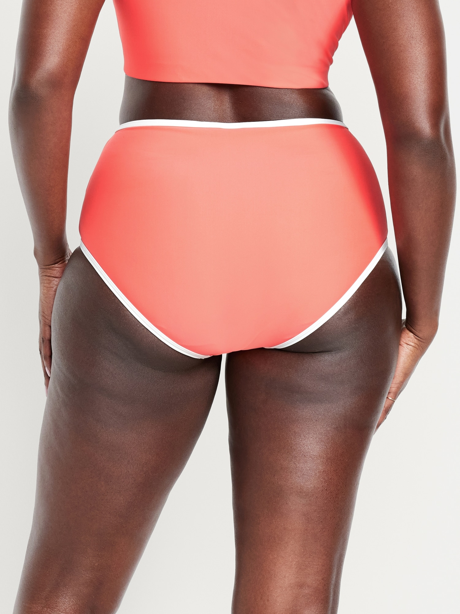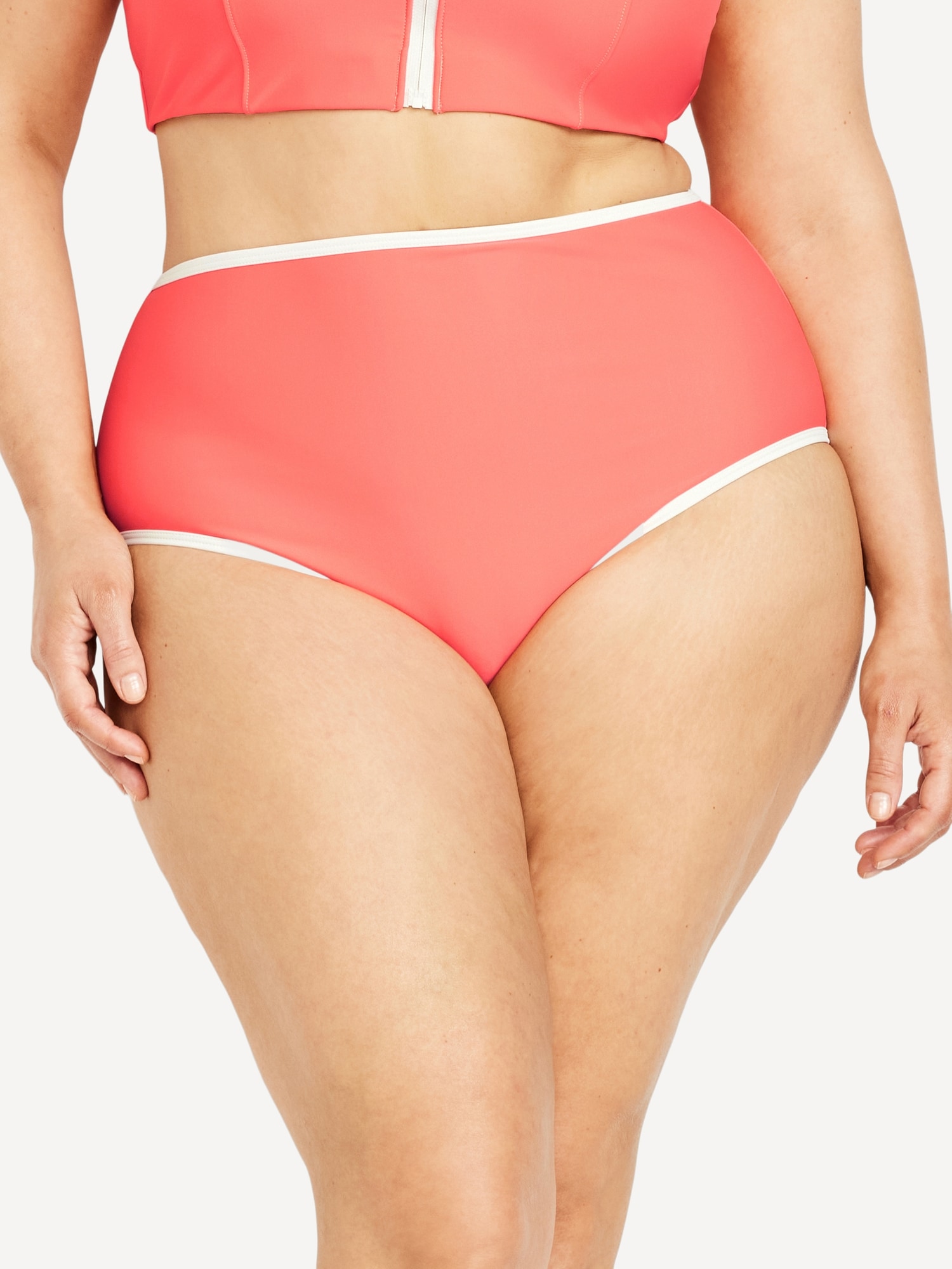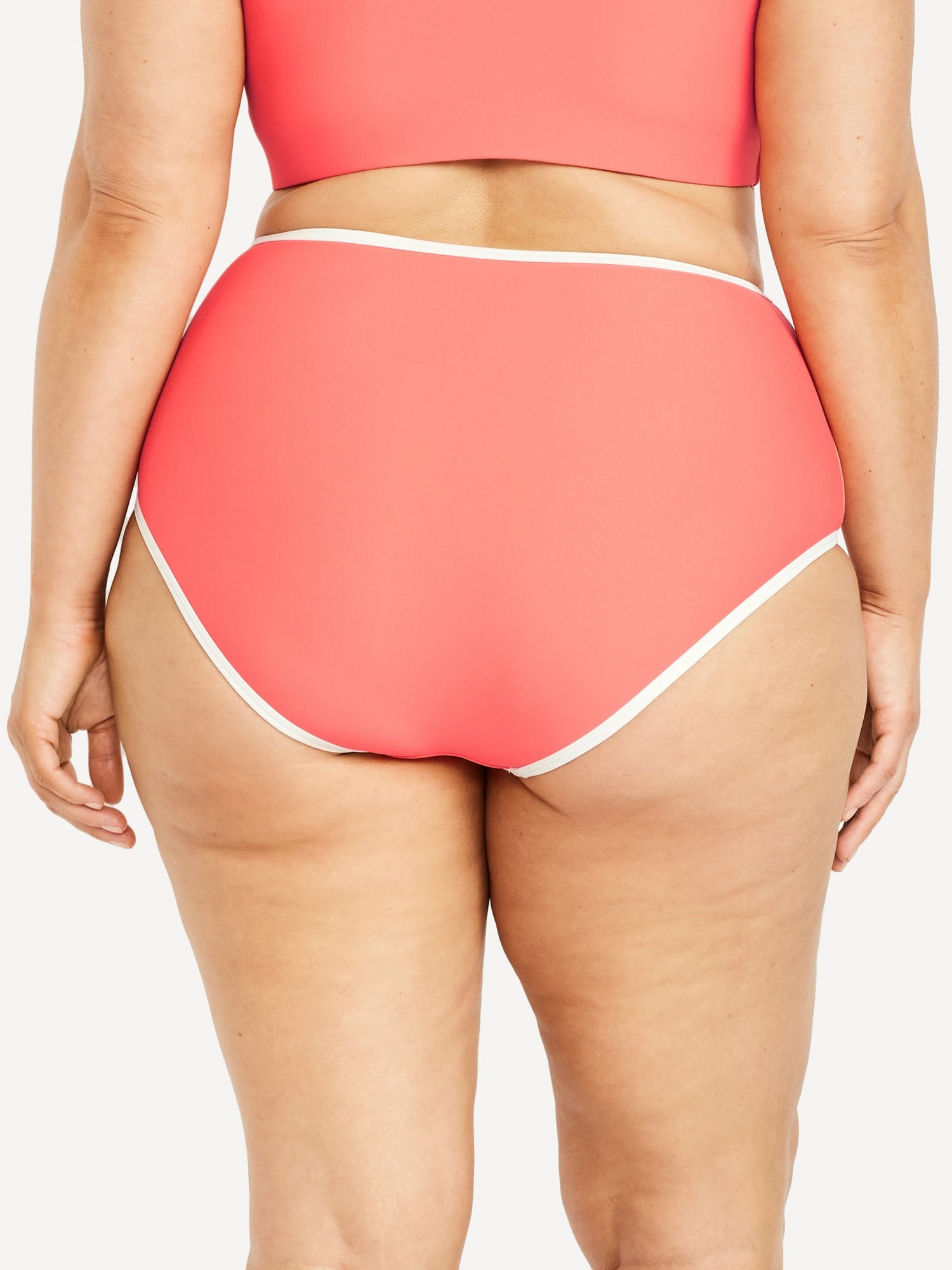 High-Waisted Matte Surf Bottoms: high waisted, elasticized leg openings, contrasting trim on select colors, #751320