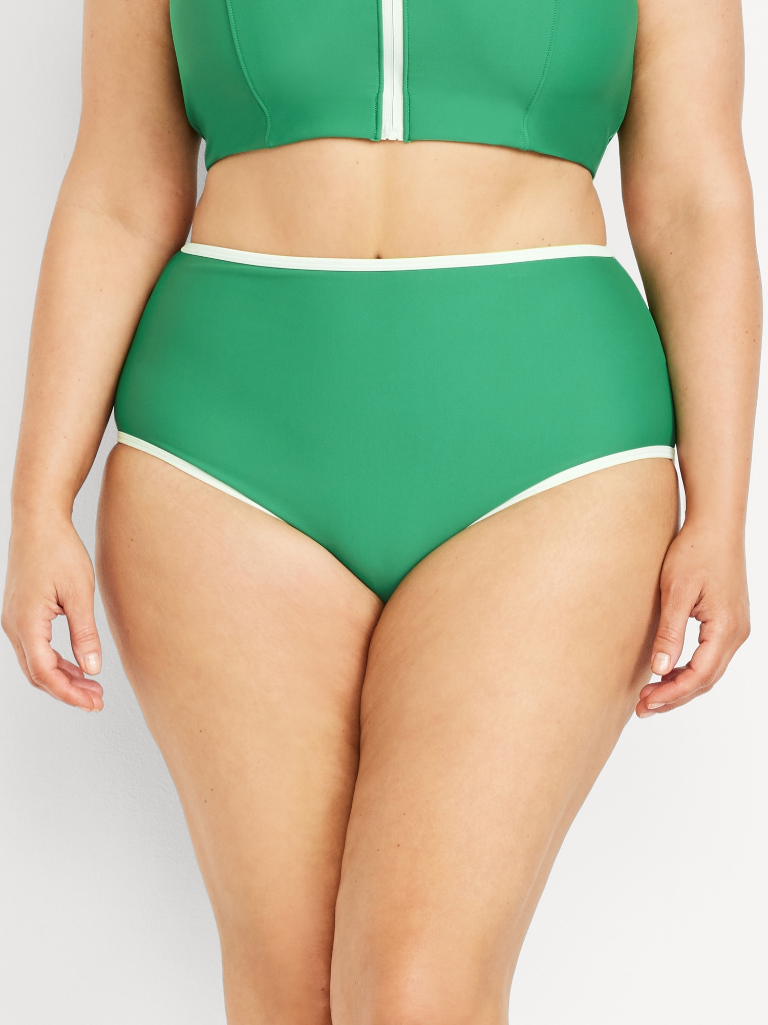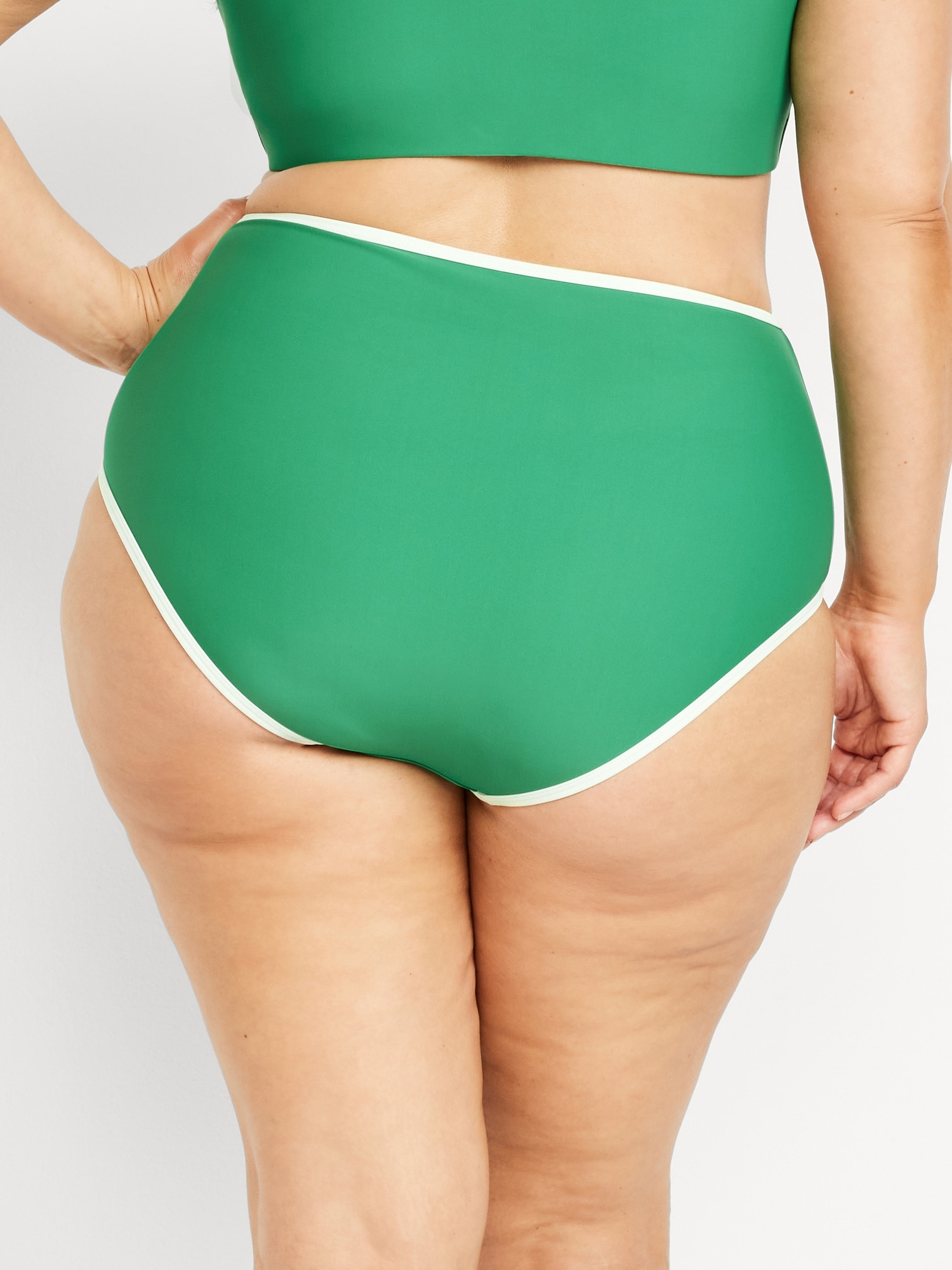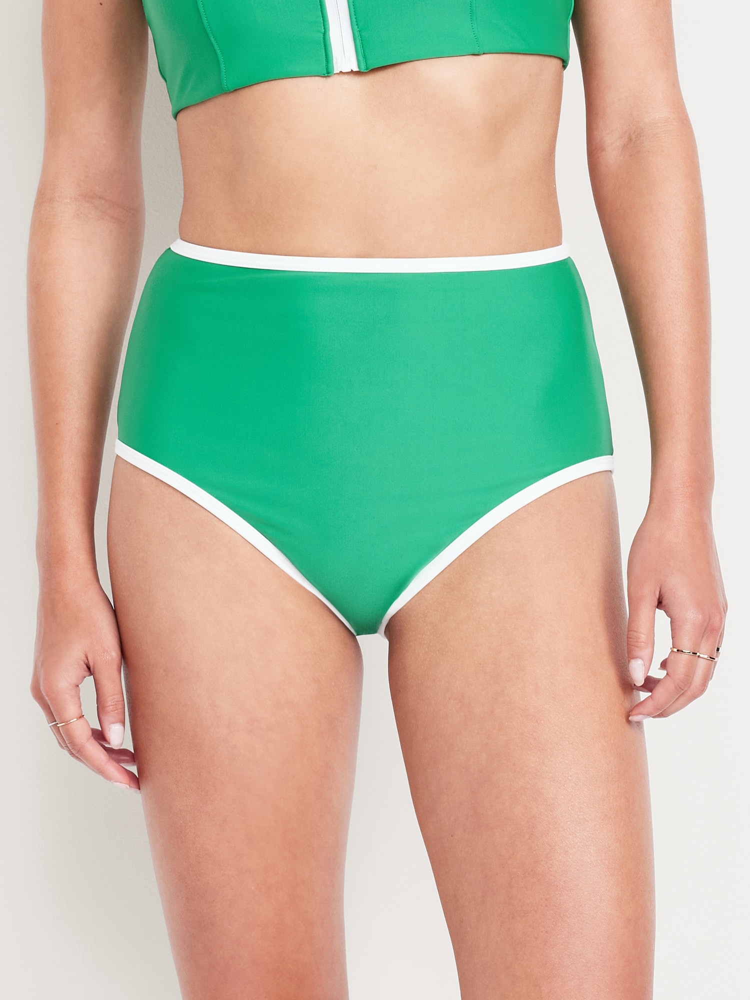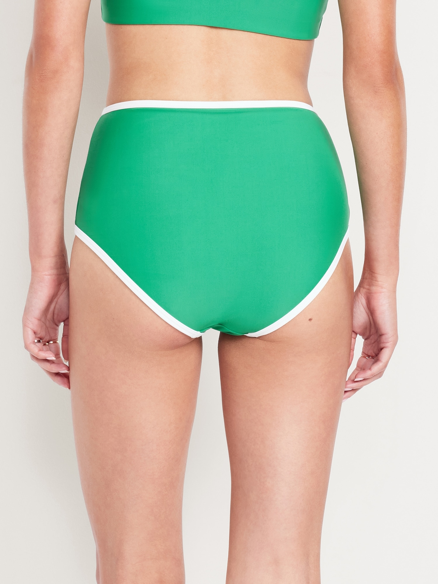 High-Waisted Matte Surf Bottoms: high waisted, elasticized leg openings, contrasting trim on select colors, #751320