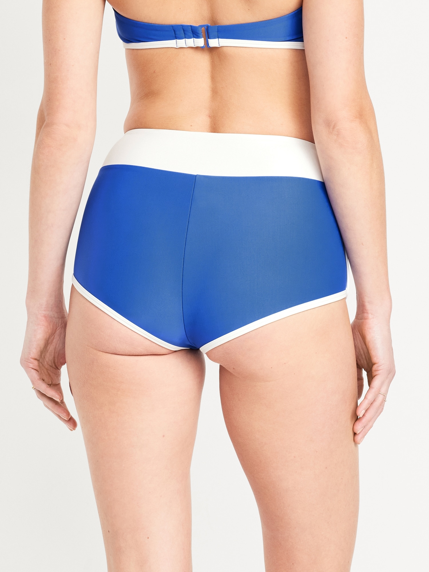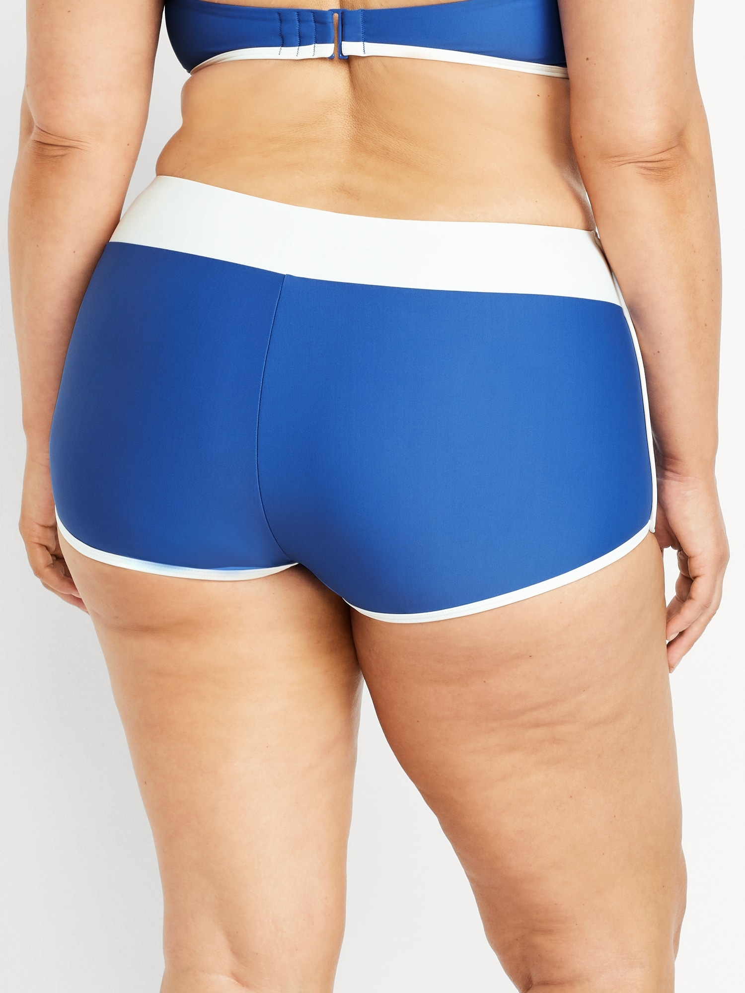 High-Waisted Matte Swim Shorts: high elastic waistband, dolphin hem, elastic leg openings, #747893