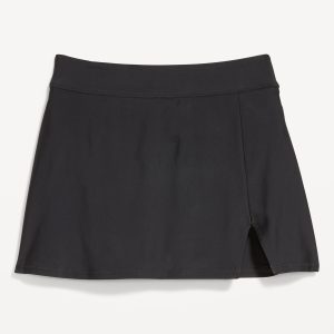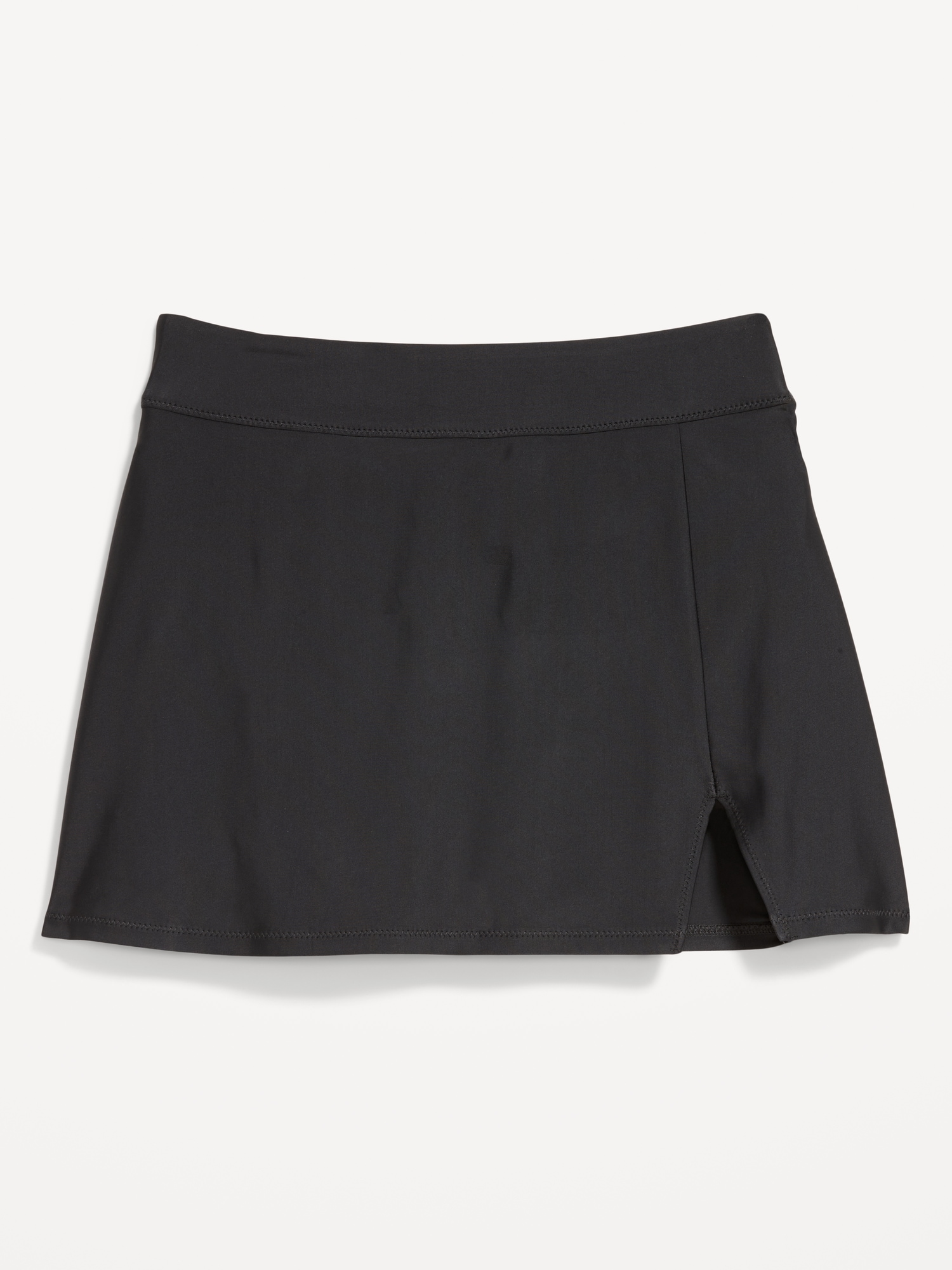 High-Waisted Matte Swim Skirt: elastic waistband, vented front, built-in briefs, #823267