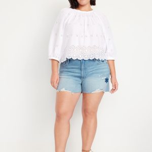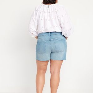 High-Waisted OG Jean Cut-Off Shorts — 3-inch inseam: button front, belt loops, zip front, front scoop pockets, back patch pockets, cutoff hem, #846719
