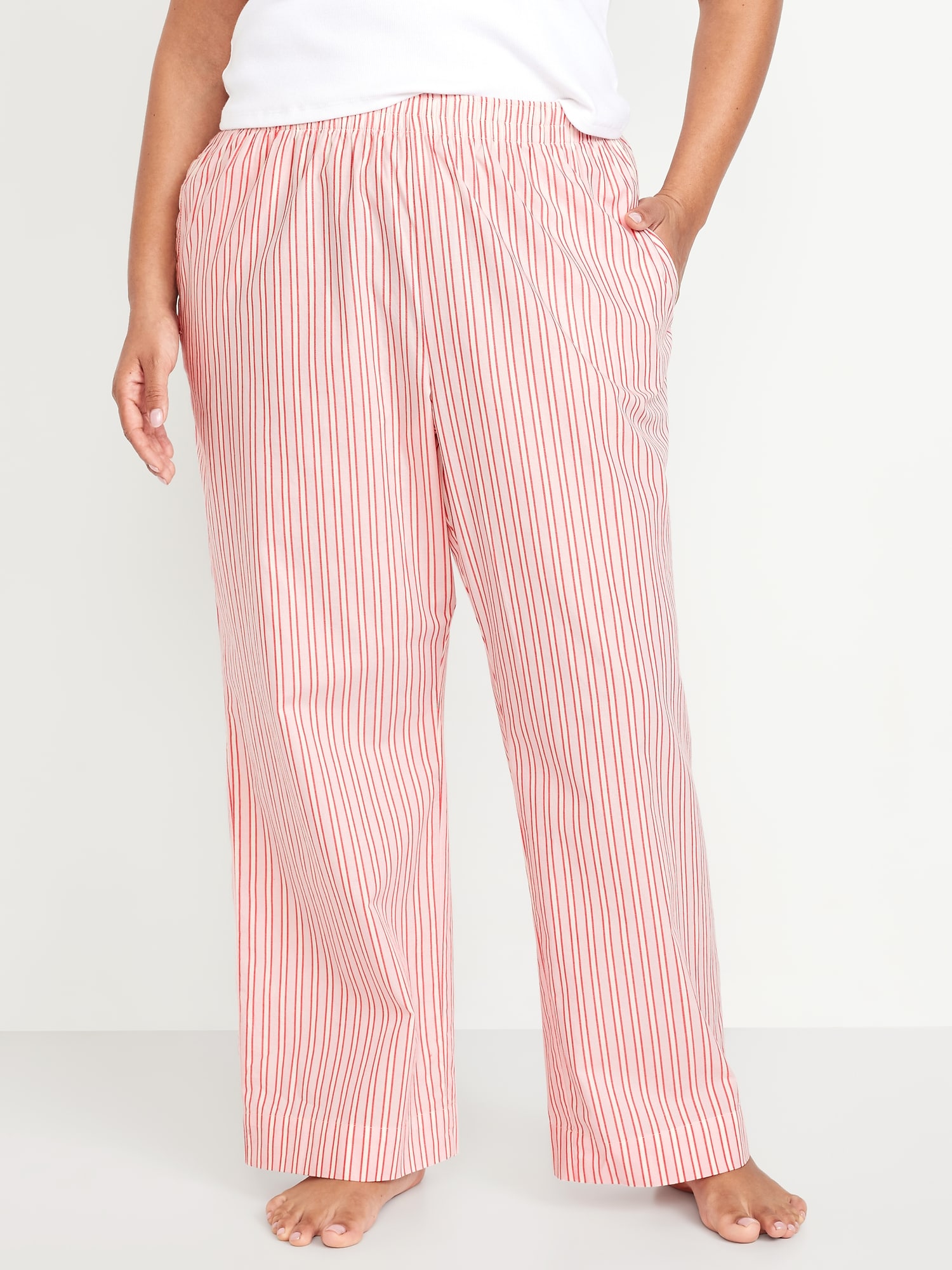 High-Waisted Poplin Pajama Pant: Crisp, breathable cotton that’s classic for a reason.elastic waist, three-button fly, prints match back to the fam, #889319