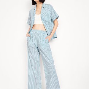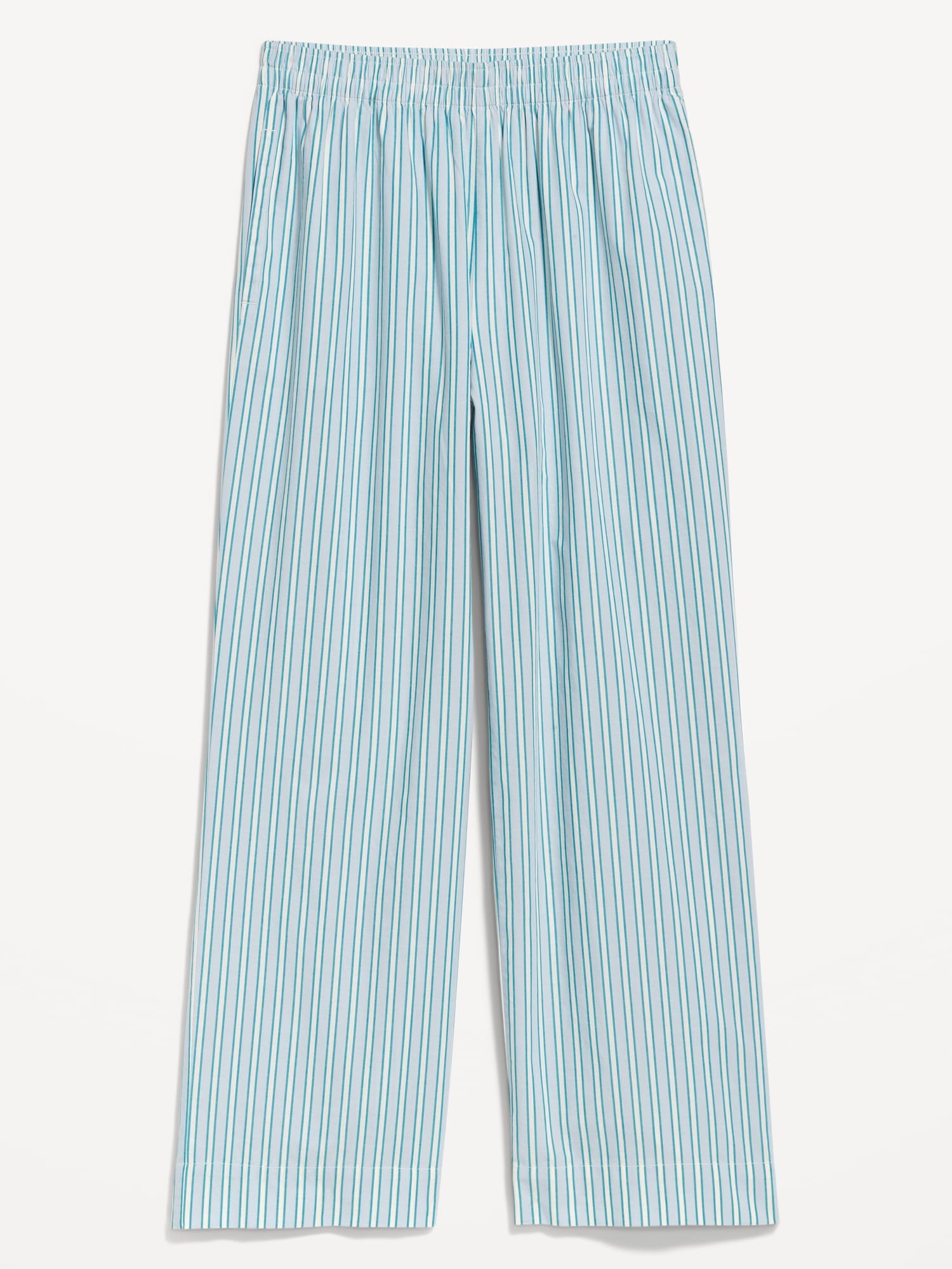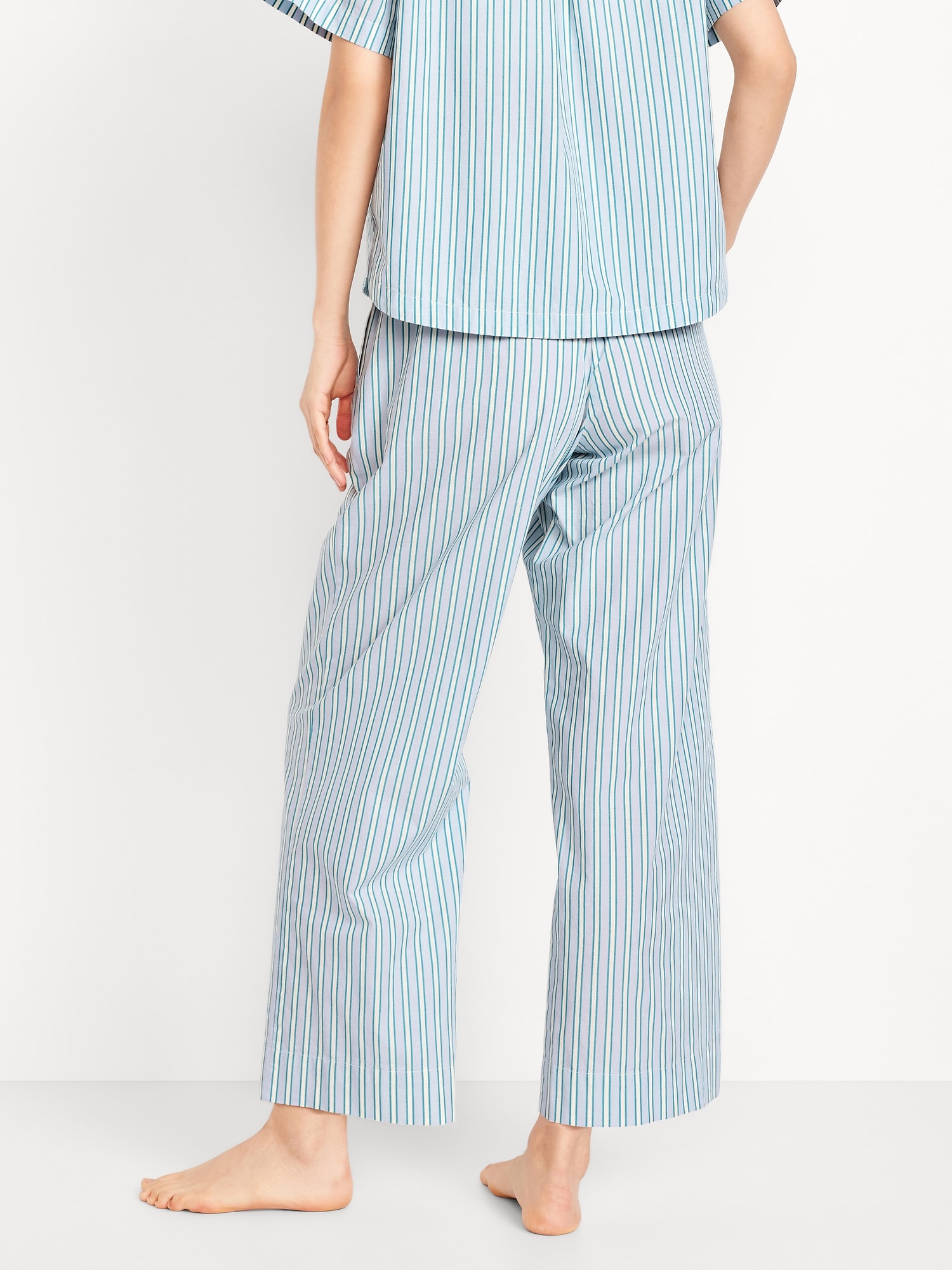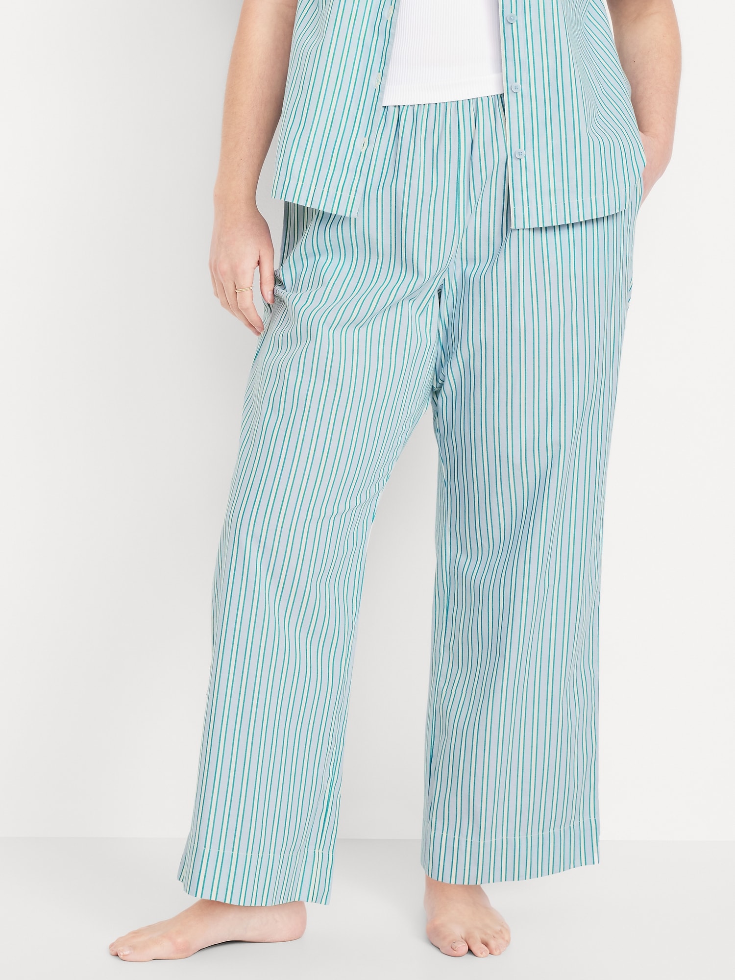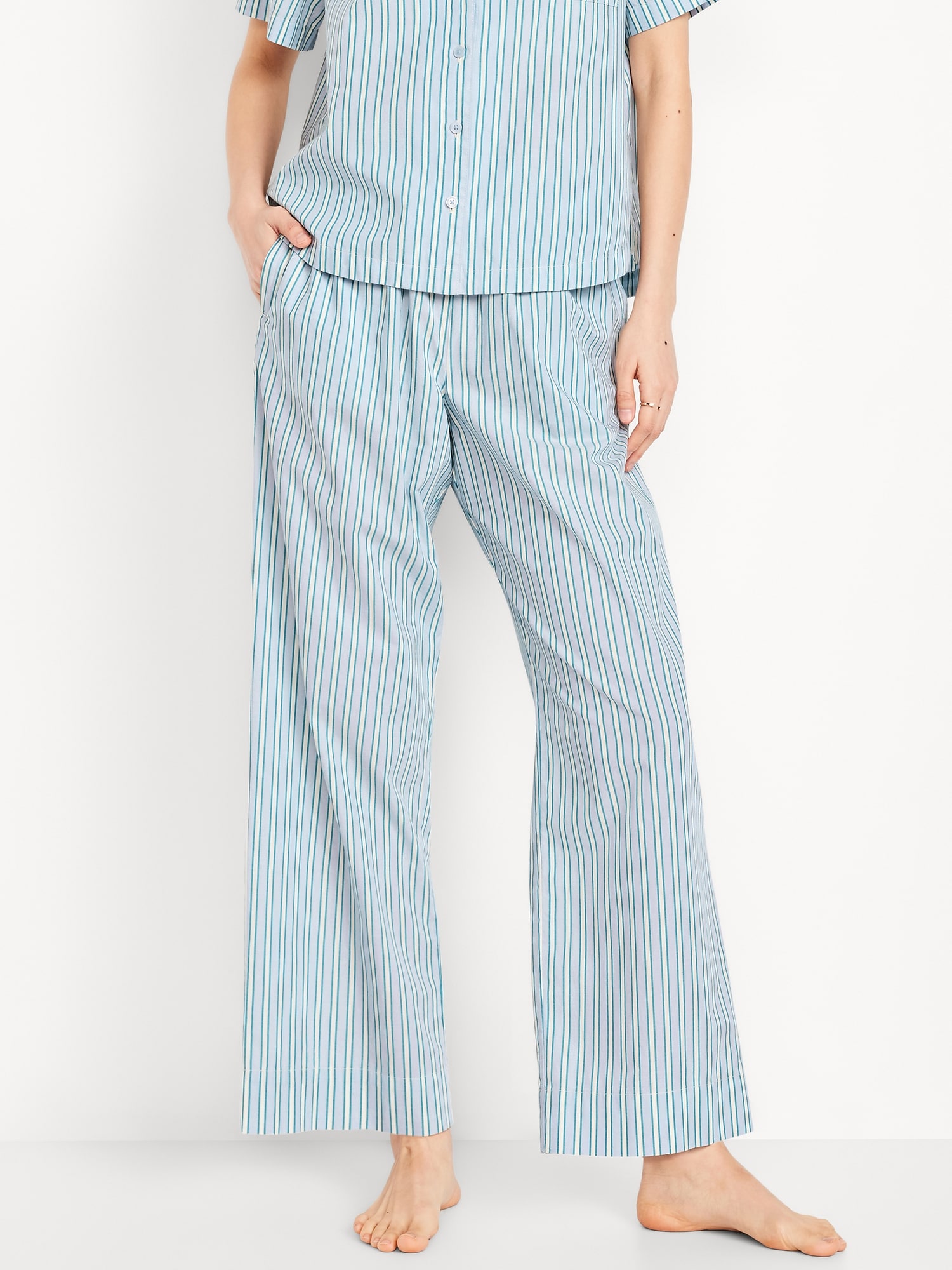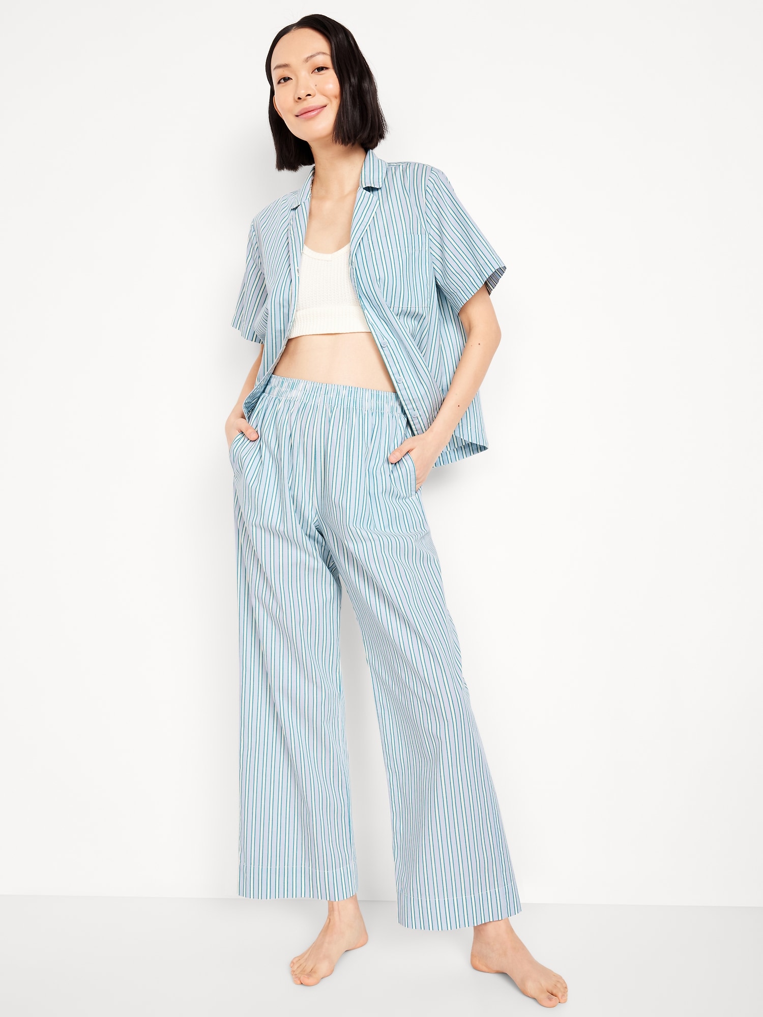 High-Waisted Poplin Pajama Pant: Crisp, breathable cotton that’s classic for a reason.elastic waist, three-button fly, prints match back to the fam, #889319