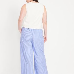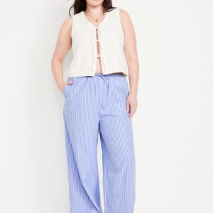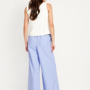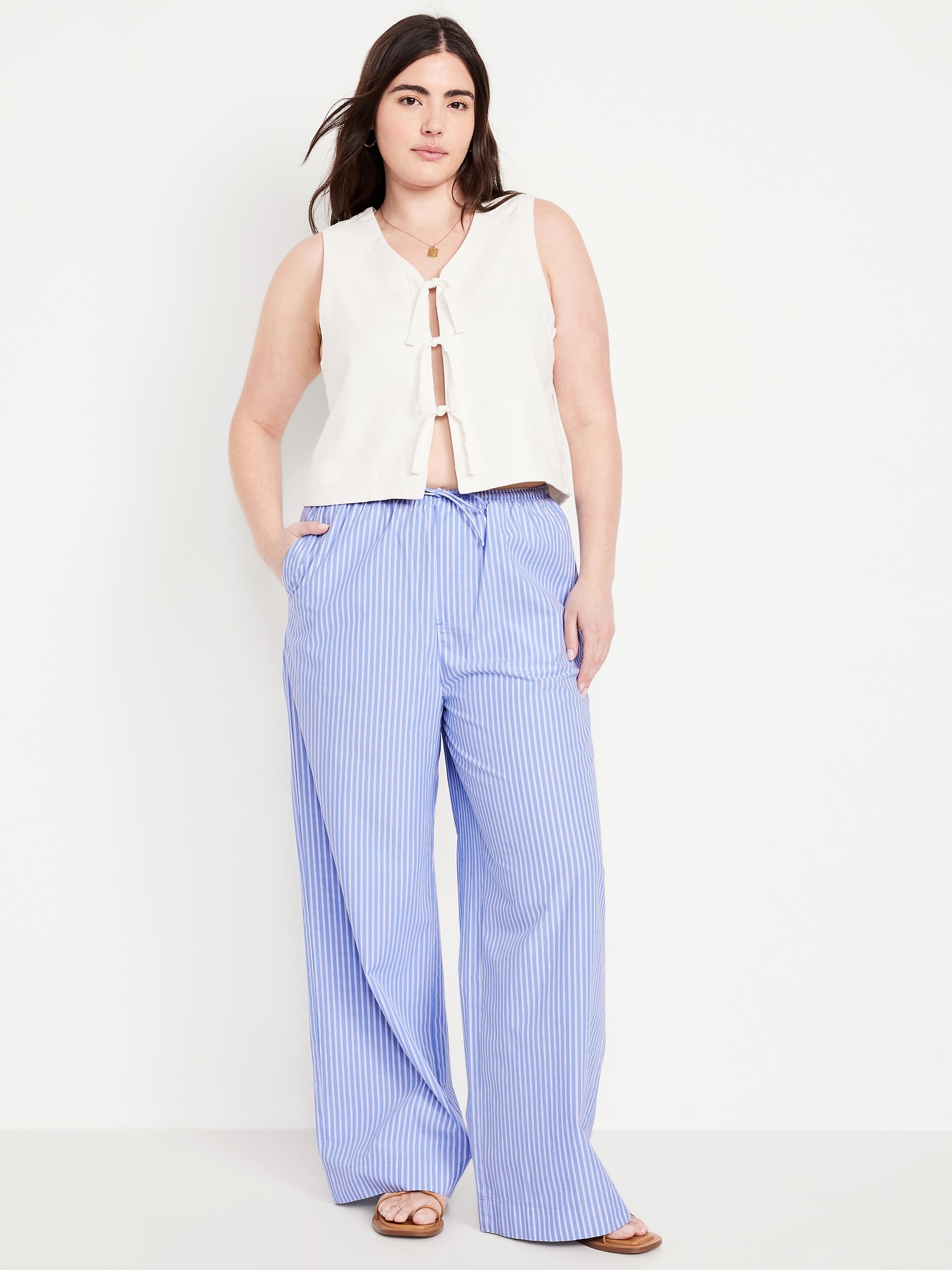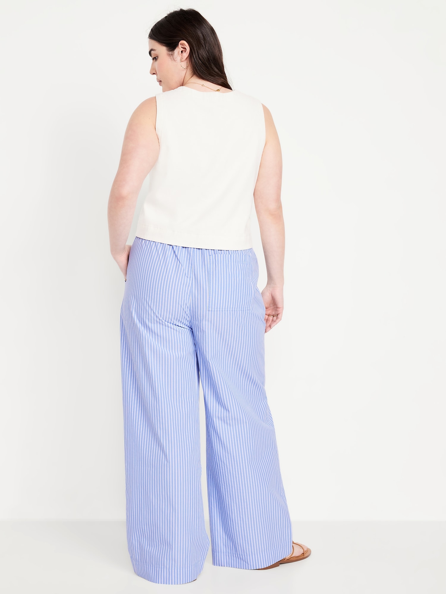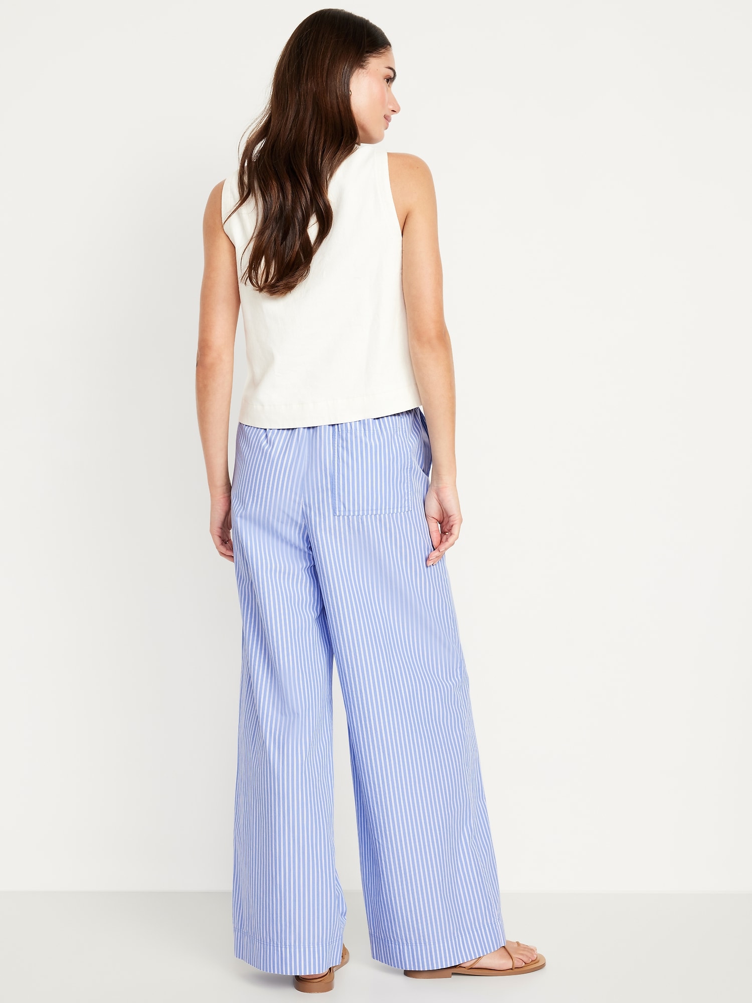 High-Waisted Poplin Super Wide-Leg Pants: elastic-drawstring high pull-on waistband, faux fly, diagonal hip pockets, back right patch pocket, super wide leg, #766294