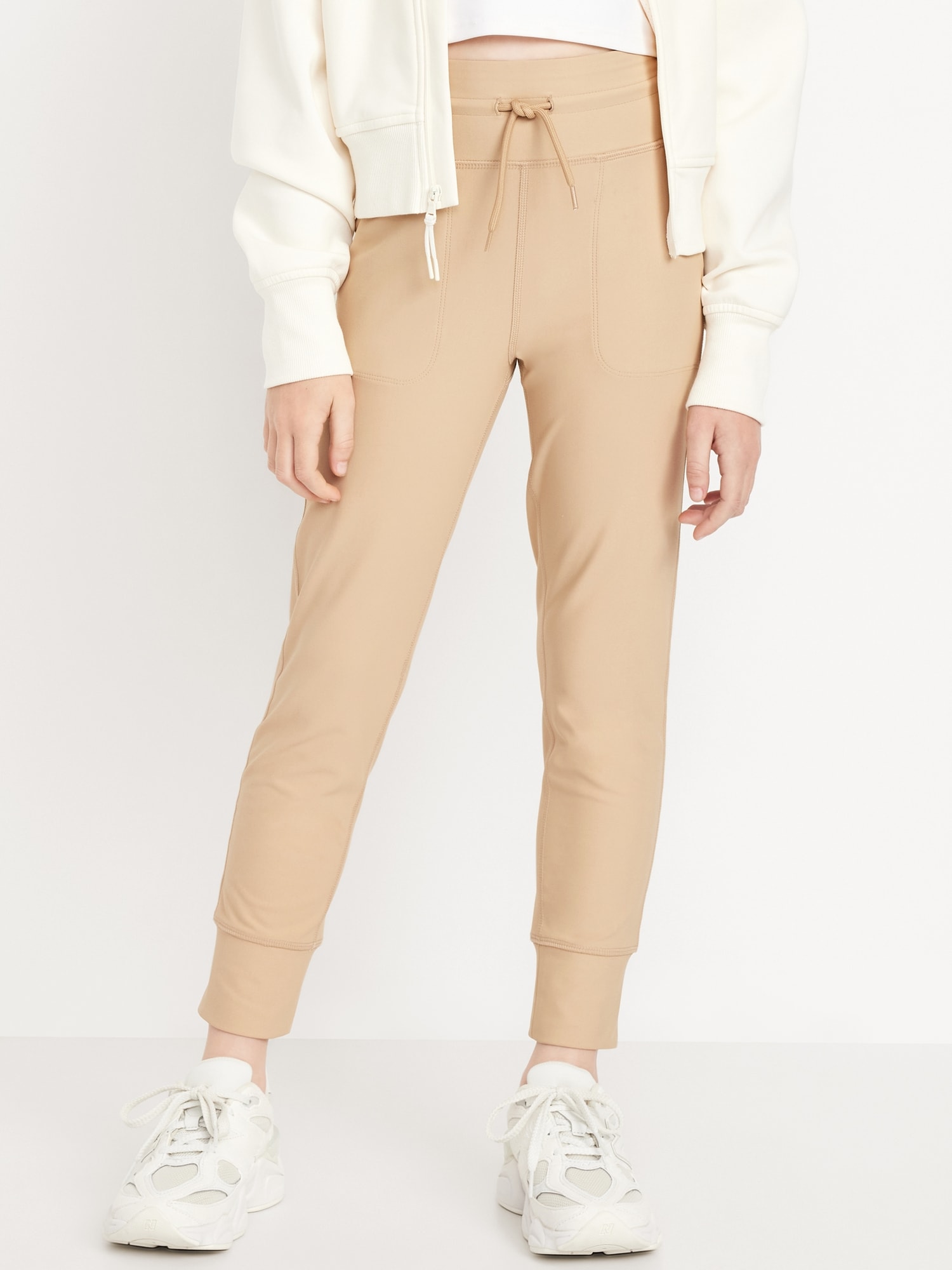 High-Waisted PowerSoft 7/8-Length Performance Leggings for Girls: elasticized waistband, high-rise, functional drawstring, diagonal pockets at front, banded leg cuffs, #762181