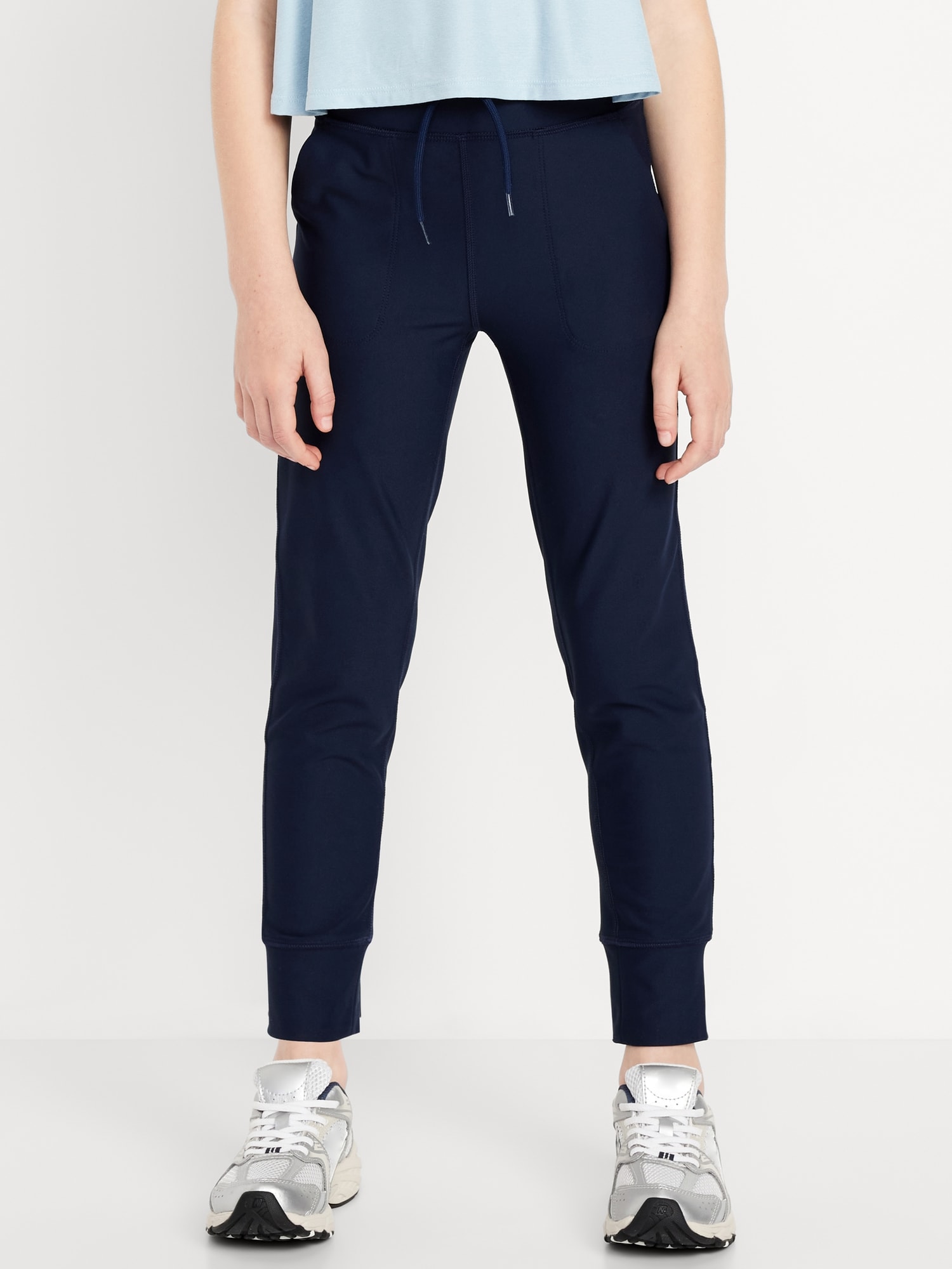 High-Waisted PowerSoft 7/8-Length Performance Leggings for Girls: elasticized waistband, high-rise, functional drawstring, diagonal pockets at front, banded leg cuffs, #762181