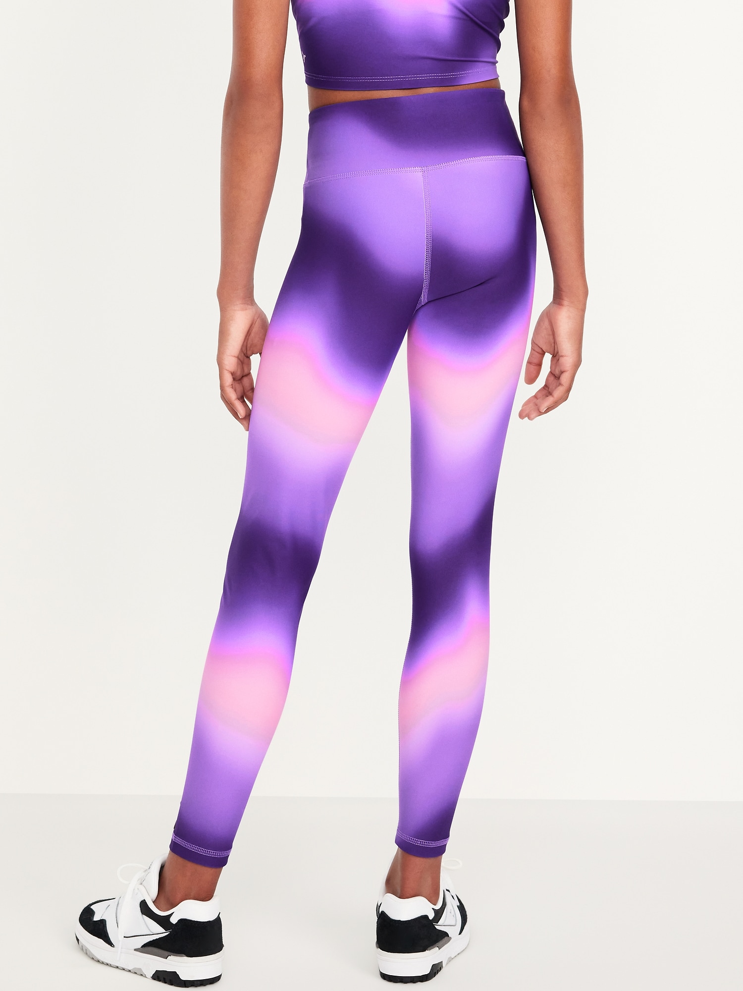 High-Waisted PowerSoft 7/8-Length Performance Leggings for Girls: elasticized waistband, high-rise, light-reflecting logo at back, ombre, #583781