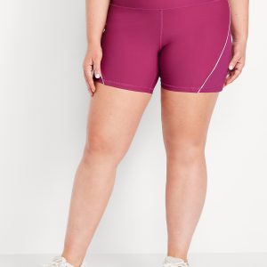 High-Waisted PowerSoft Biker Shorts — 6-inch inseam: Featuring PowerSoft. Light compression meets a peachy-smooth, sweat-wicking fabric.pull-on waist with hidden back pocket, ribbed side panels, contrasting piping, go-dry wicks moisture, #748684