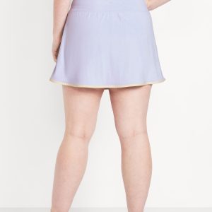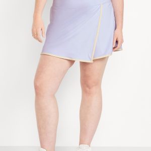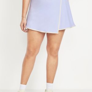 High-Waisted PowerSoft Faux-Wrap Skort: Featuring PowerSoft. Light compression meets a peachy-smooth, sweat-wicking fabric.pull-on waistband, faux-wrap front, built-in bike shorts, mini length, go-dry wicks moisture, breathable, #694169