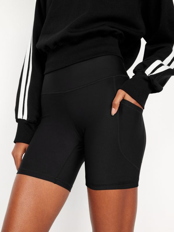 High-Waisted PowerSoft Pocket Biker Shorts — 6-inch inseam: Featuring PowerSoft. Light compression meets a peachy-smooth, sweat-wicking fabric.pull-on waist, side pocket fits your phone, go-dry wicks moisture, #662948
