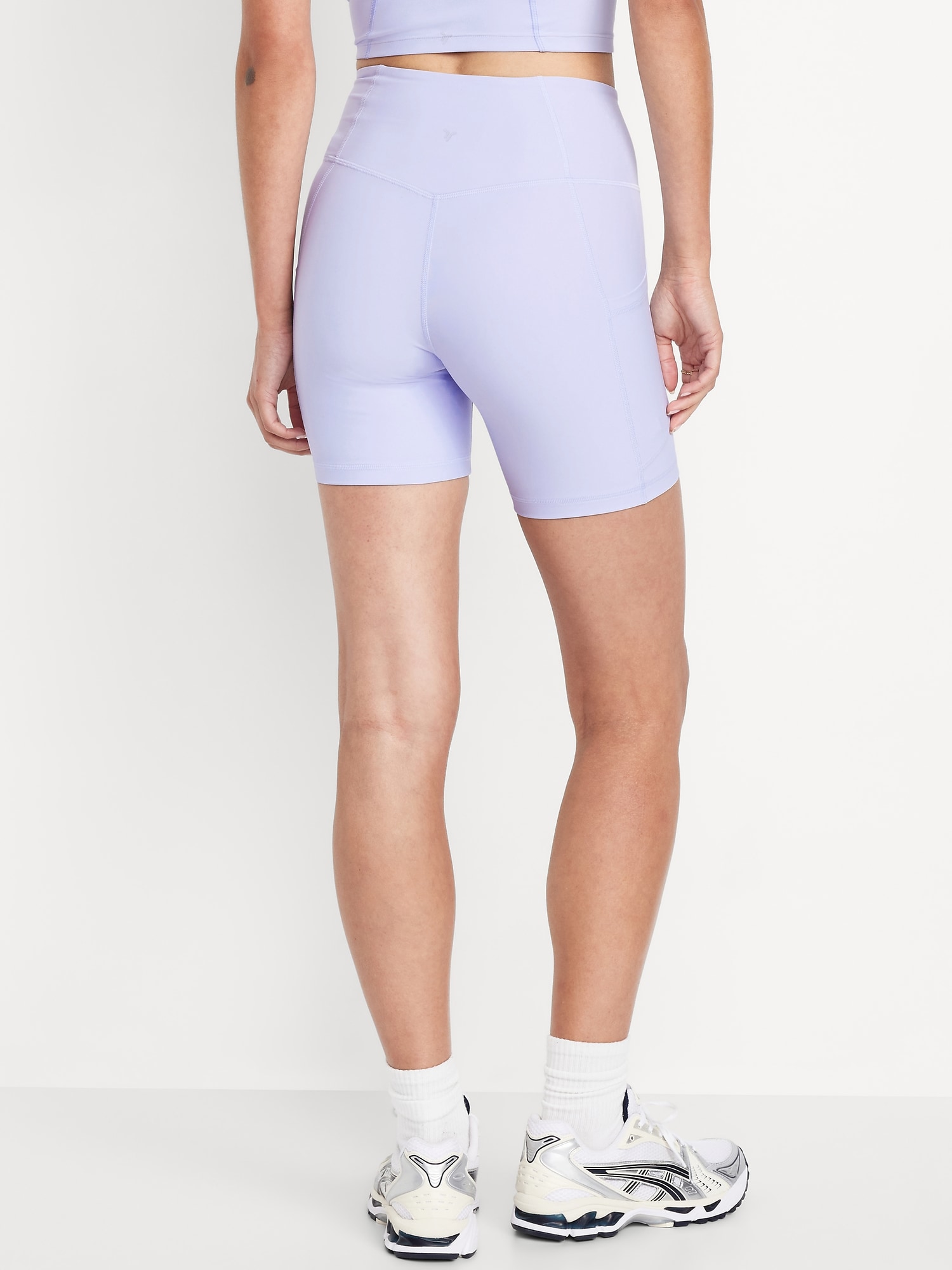 High-Waisted PowerSoft Pocket Biker Shorts — 6-inch inseam: Featuring PowerSoft. Light compression meets a peachy-smooth, sweat-wicking fabric.pull-on waist, side pocket fits your phone, go-dry wicks moisture, #662948