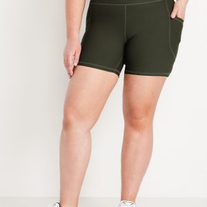 High-Waisted PowerSoft Pocket Biker Shorts — 6-inch inseam: Featuring PowerSoft. Light compression meets a peachy-smooth, sweat-wicking fabric.pull-on waist, side pocket fits your phone, go-dry wicks moisture, #662948