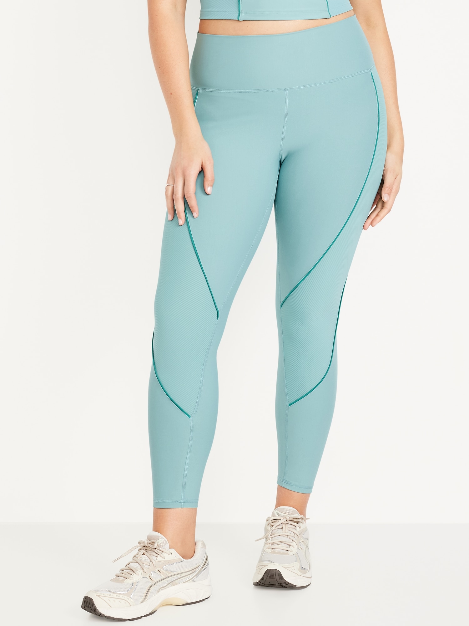 High-Waisted PowerSoft Rib Mix 7/8 Leggings: Featuring PowerSoft. Light compression meets a peachy-smooth, sweat-wicking fabric.prints and colors vary, go-dry wicks moisture, #537812