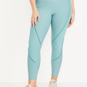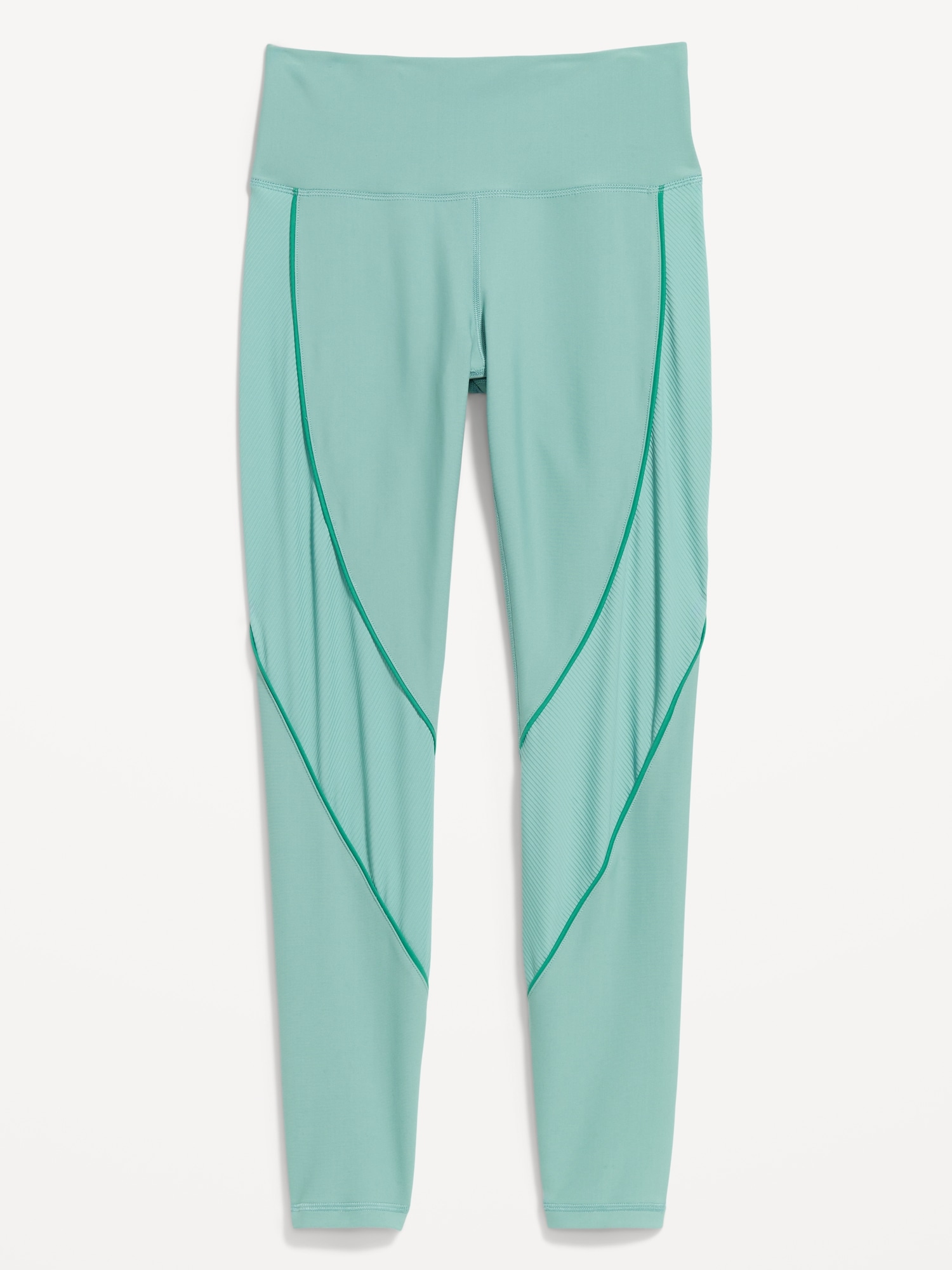 High-Waisted PowerSoft Rib Mix 7/8 Leggings: Featuring PowerSoft. Light compression meets a peachy-smooth, sweat-wicking fabric.ribbed side panels, contrasting piping, go-dry wicks moisture, #749127