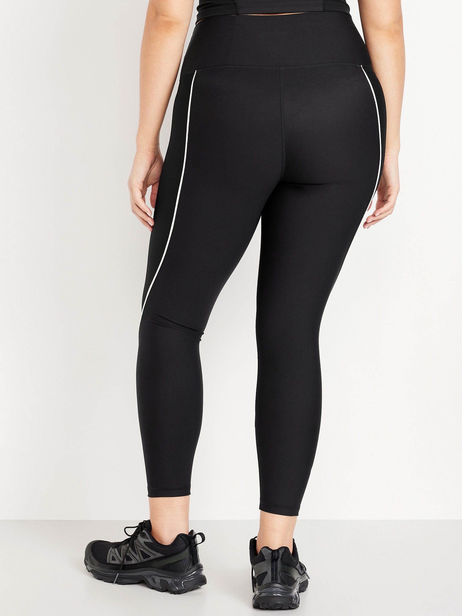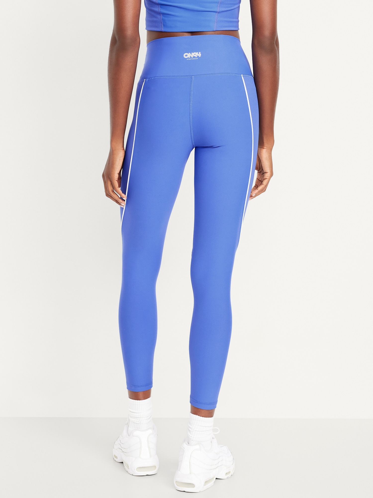 High-Waisted PowerSoft Rib Mix 7/8 Leggings: Featuring PowerSoft. Light compression meets a peachy-smooth, sweat-wicking fabric.ribbed side panels, contrasting piping, go-dry wicks moisture, #749127