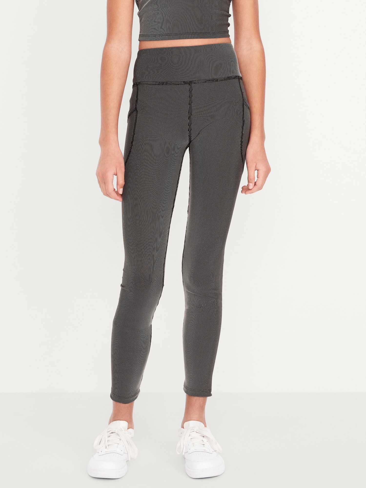 High-Waisted PowerSoft Ribbed Performance 7/8 Leggings for Girls