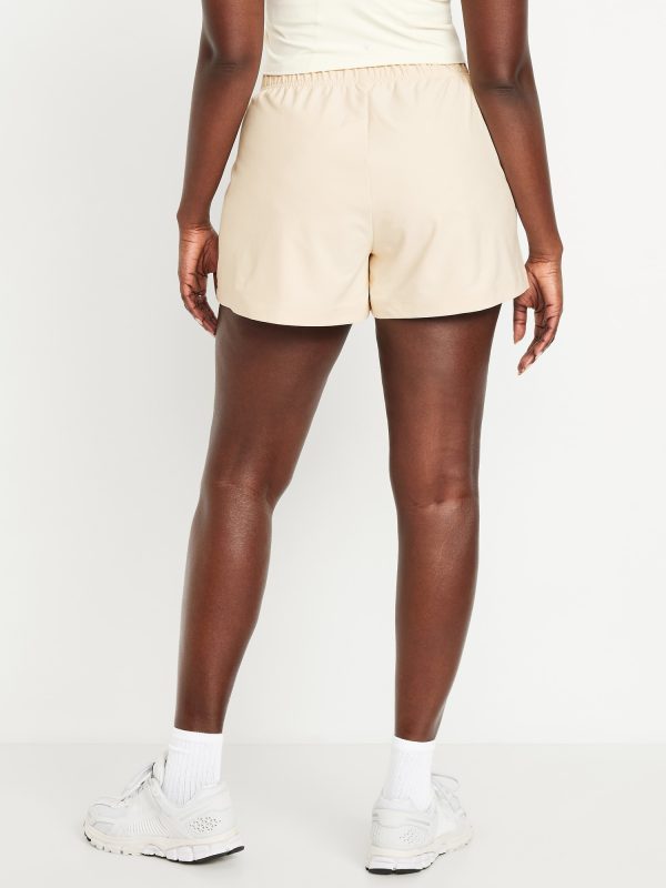 High-Waisted PowerSoft Shorts — 3.5-inch inseam: Featuring PowerSoft. Light compression meets a peachy-smooth, sweat-wicking fabric.elastic-drawstring waistband, diagonal hip pockets, go-dry wicks moisture, breathable, easy pull-on style, #694167