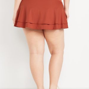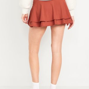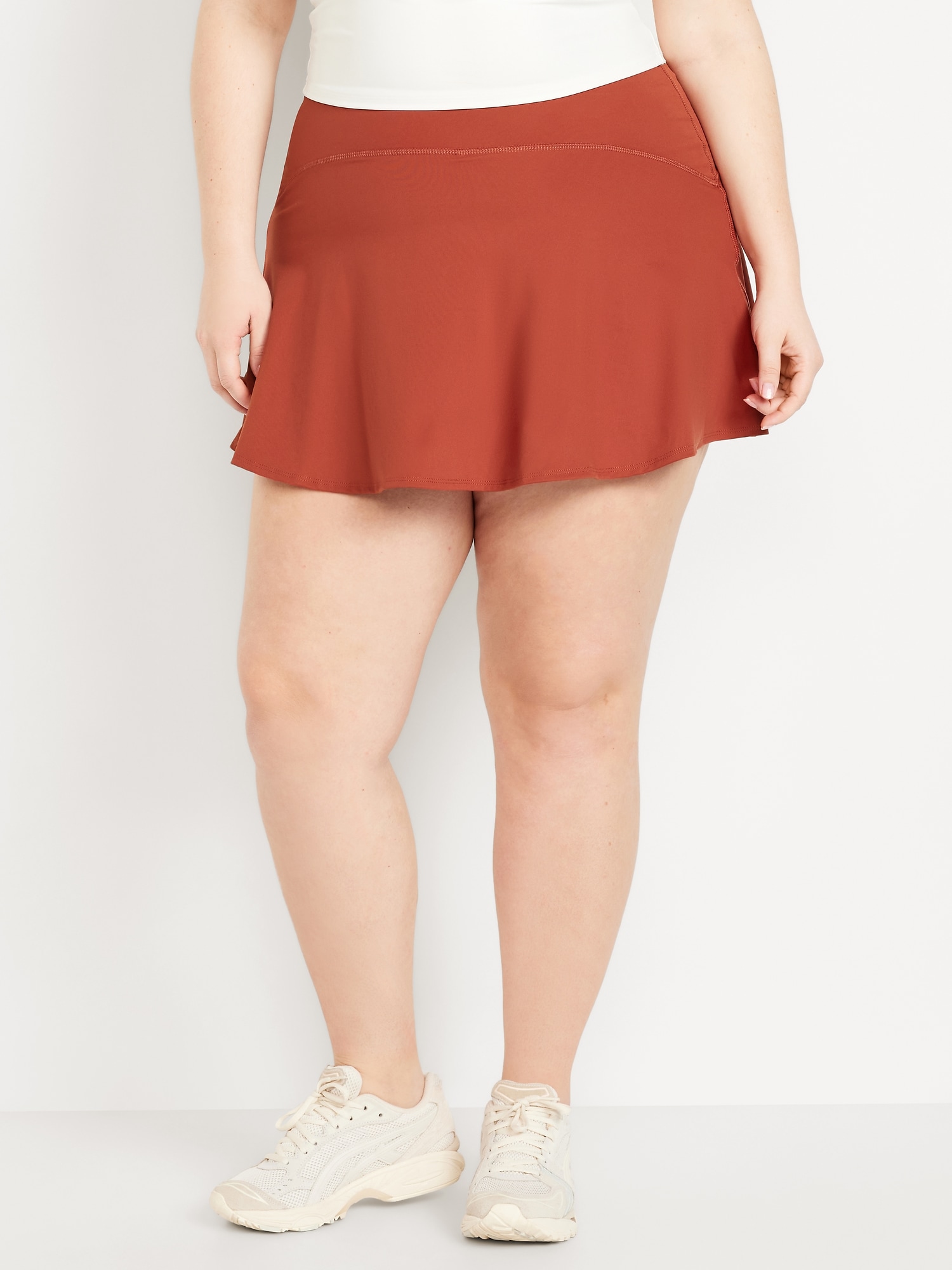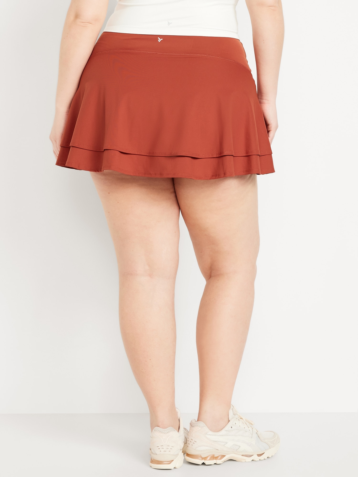 High-Waisted PowerSoft Skort: Featuring PowerSoft. Light compression meets a peachy-smooth, sweat-wicking fabric.elasticized waist, pocket fits your phone, built-in biker shorts, tiered ruffles at back, go-dry wicks moisture, #400173