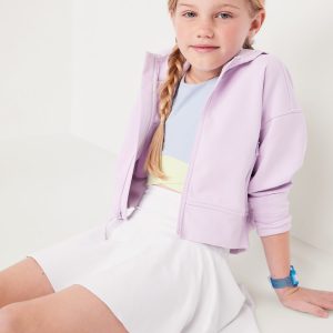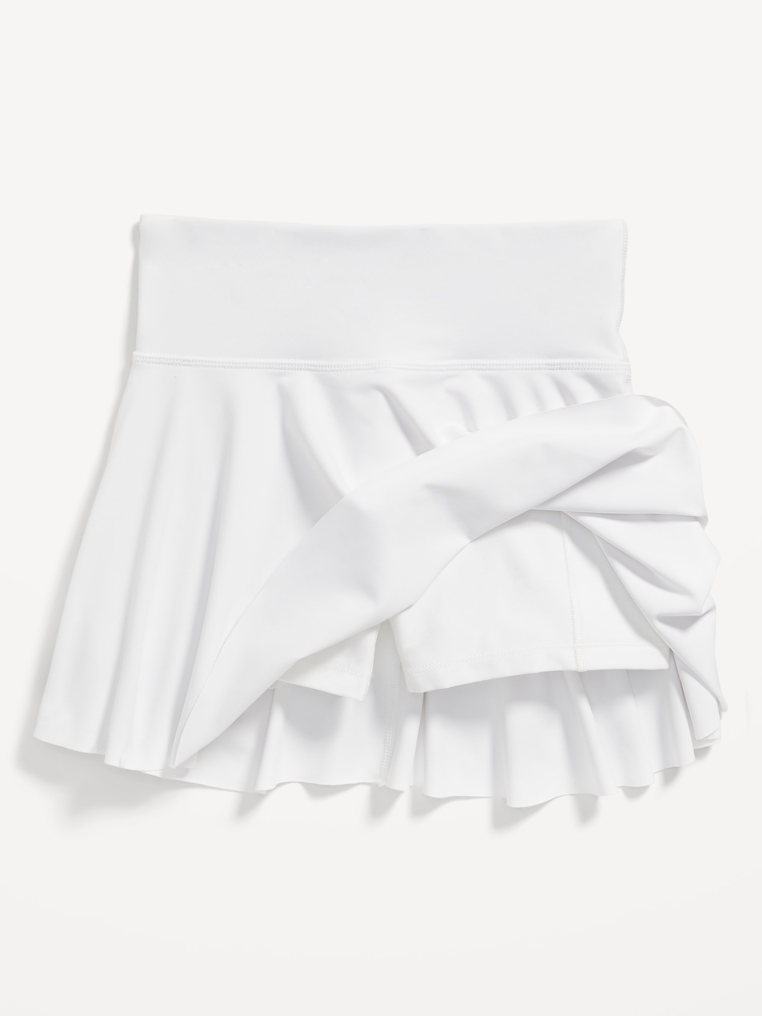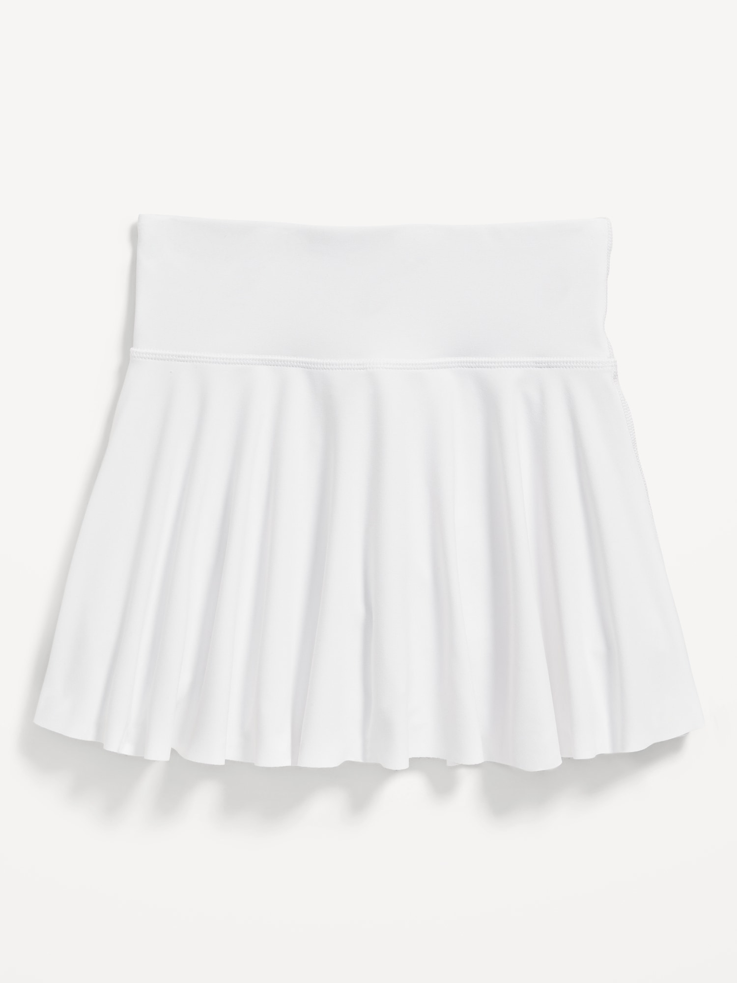 High-Waisted PowerSoft Skort for Girls: high-rise, elasticized waistband, reflective logo in back, mini-length skirt, built-in biker shorts, side pocket on shorts, easy pull-on style, #831549