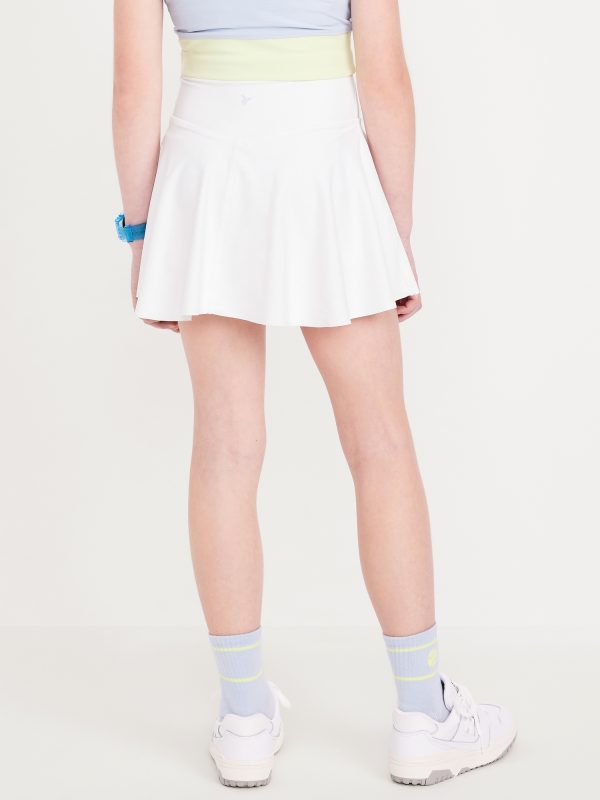 High-Waisted PowerSoft Skort for Girls: high-rise, elasticized waistband, reflective logo in back, mini-length skirt, built-in biker shorts, side pocket on shorts, easy pull-on style, #831549