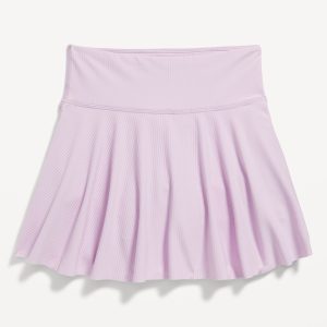 High-Waisted PowerSoft Skort for Girls: high-rise, elasticized waistband, reflective logo in back, mini-length skirt, built-in biker shorts, side pocket on shorts, easy pull-on style, #831549