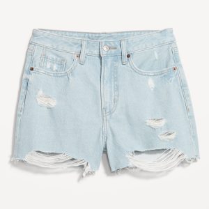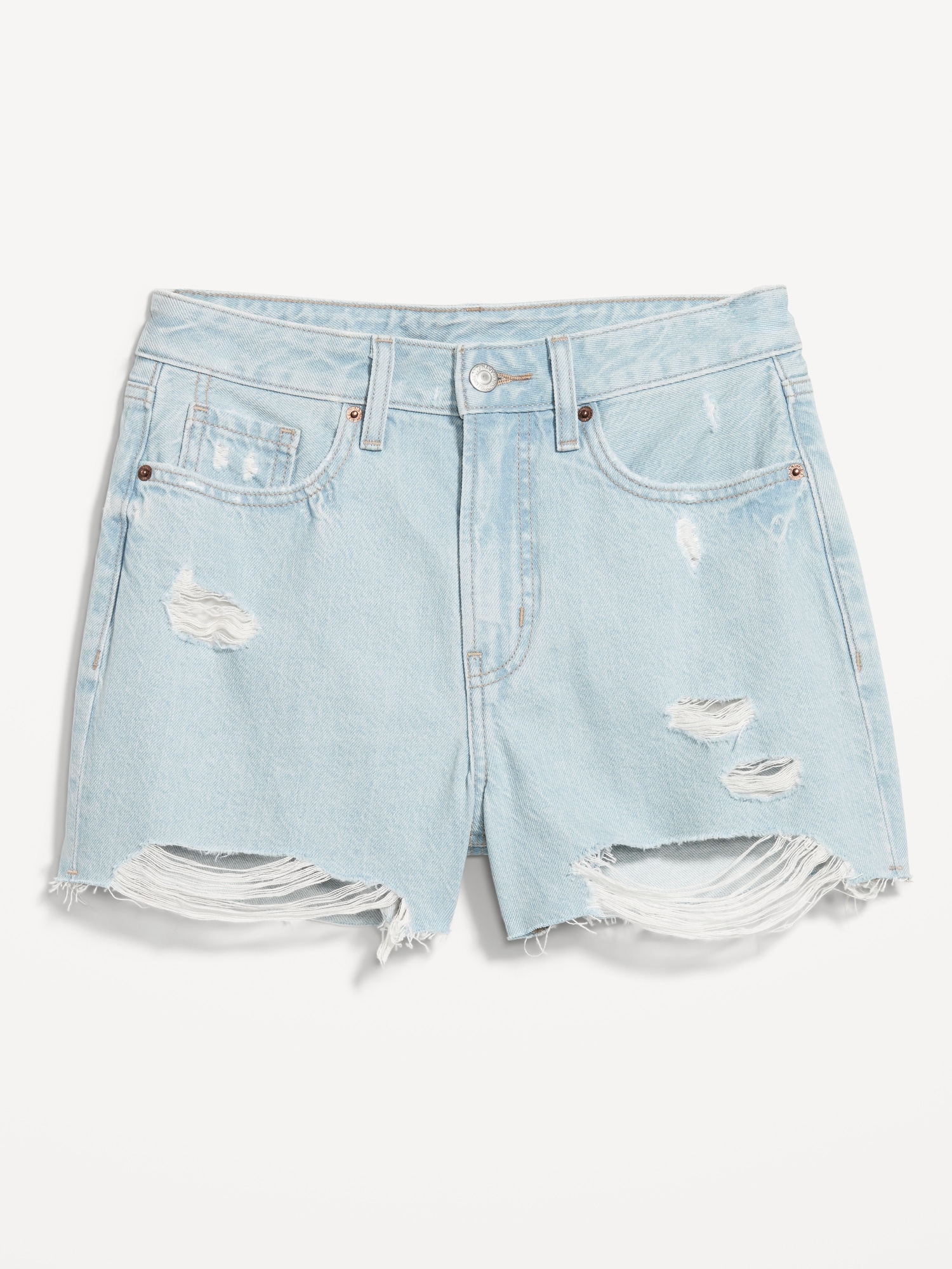 High-Waisted Rigid OG Jean Cut-Off Shorts — 3-inch inseam: high waisted, zip fly, ripped detail, cut-off hem, #766336