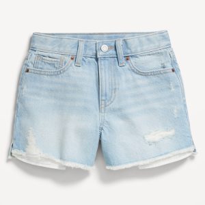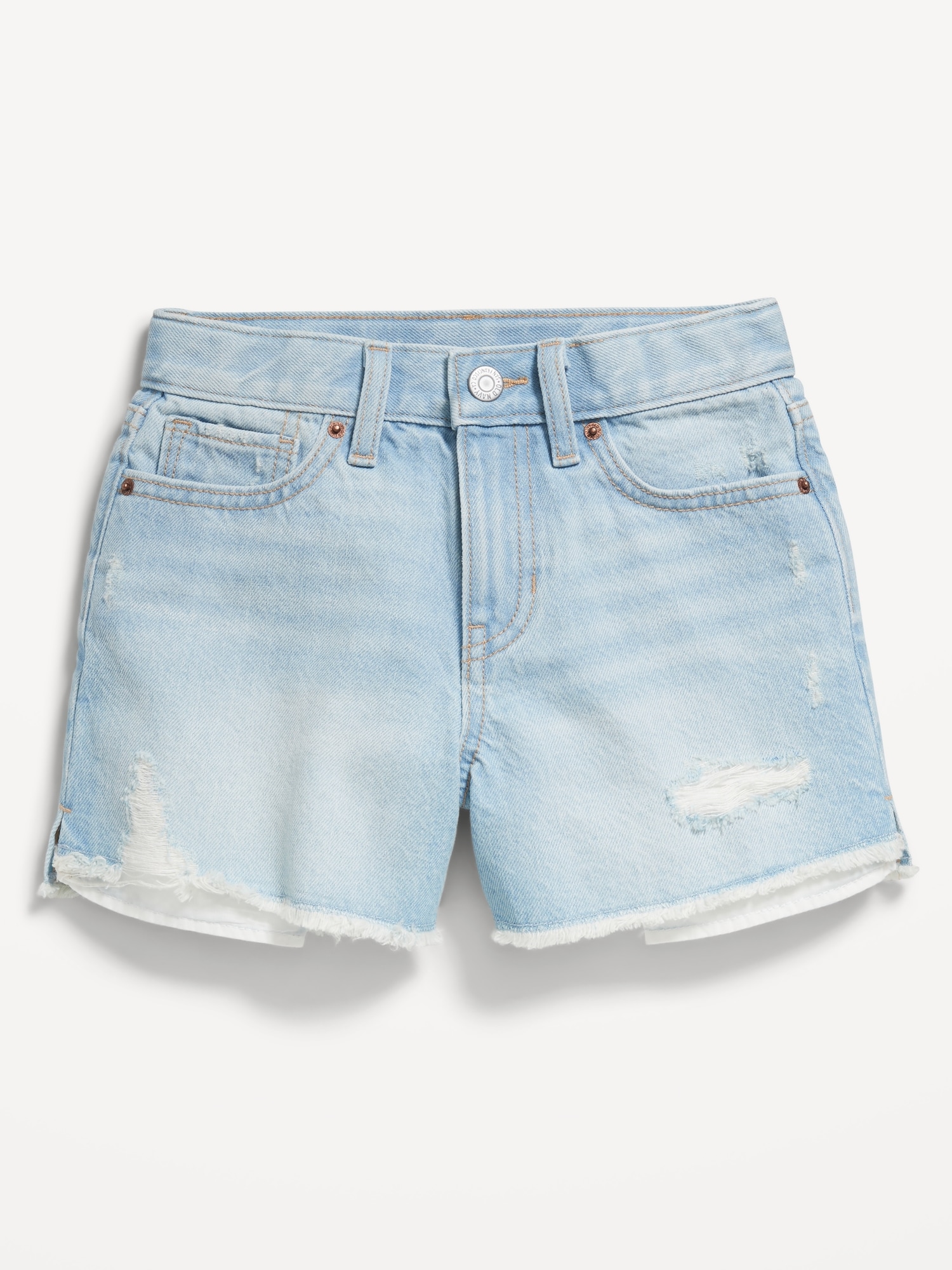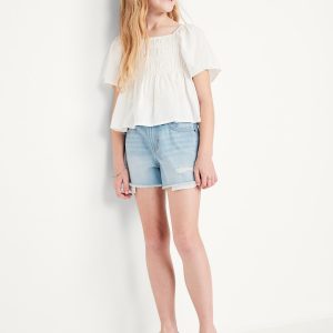 High-Waisted Ripped Frayed-Hem Jean Shorts for Girls