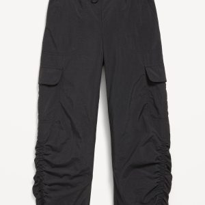 High-Waisted Side Ruched Cargo Parachute Joggers for Girls