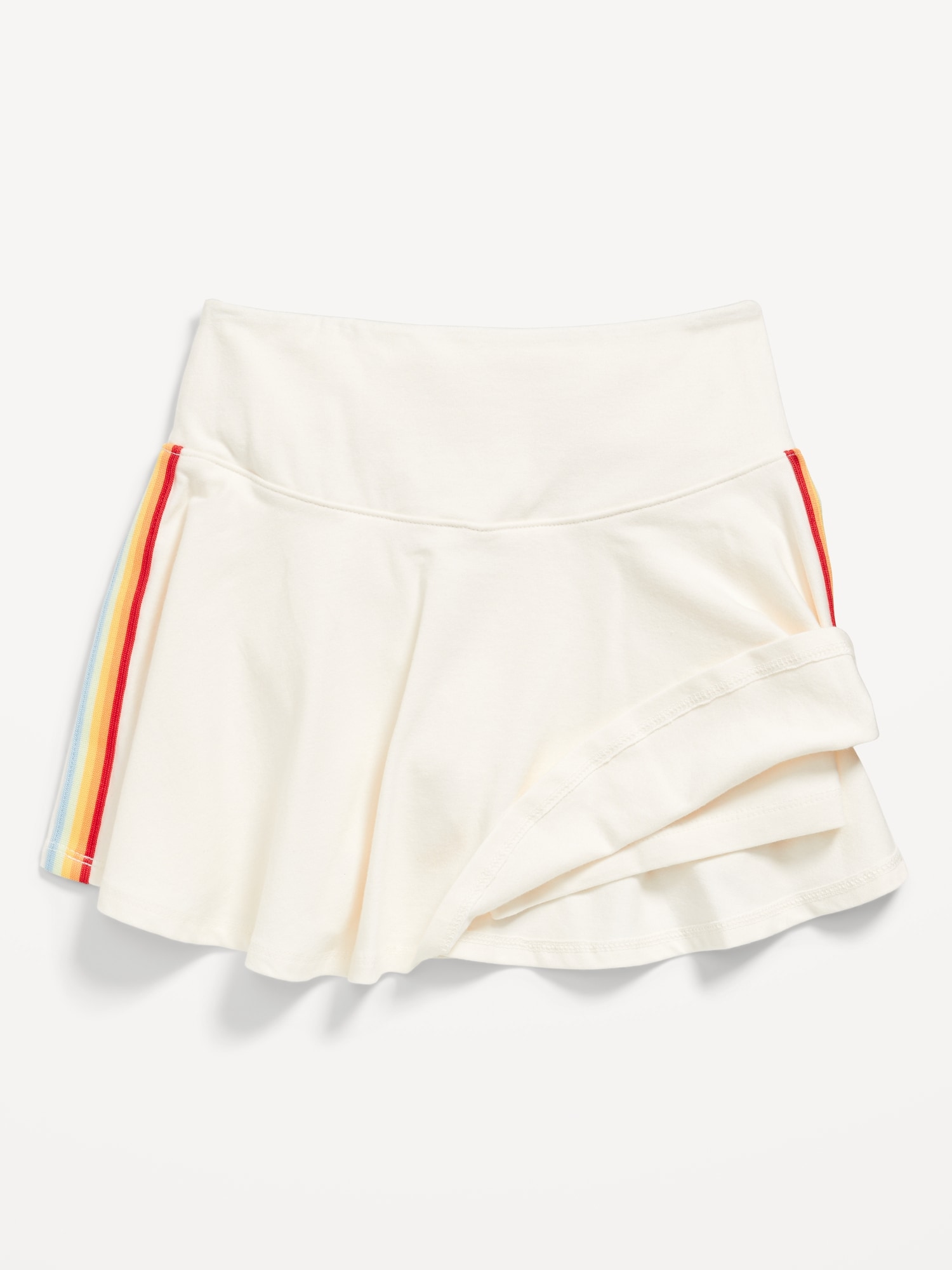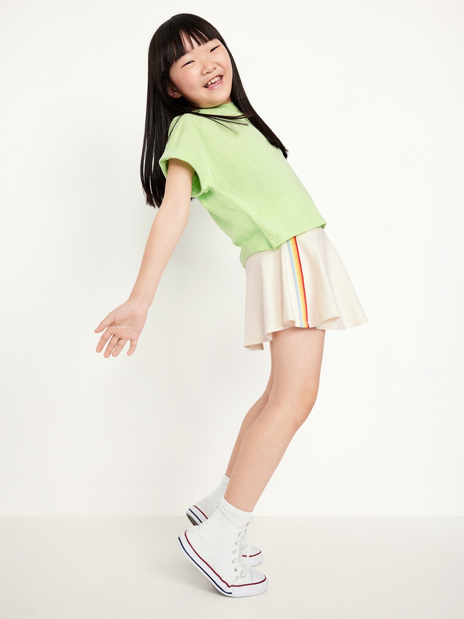 High-Waisted Skort for Girls: built-in biker shorts, high-rise, elasticized waistband, mini-length skirt, easy pull-on style, #693658