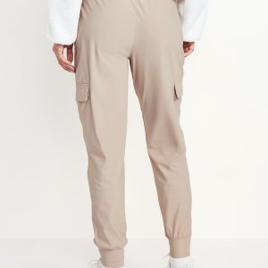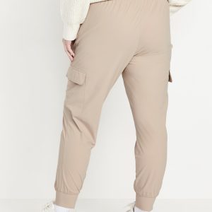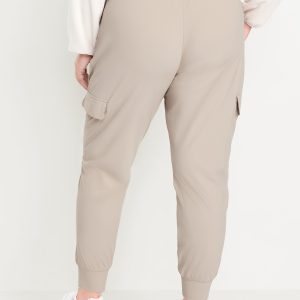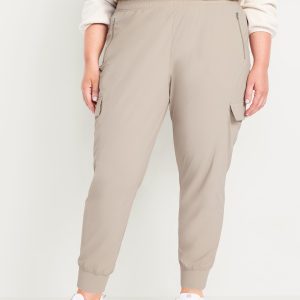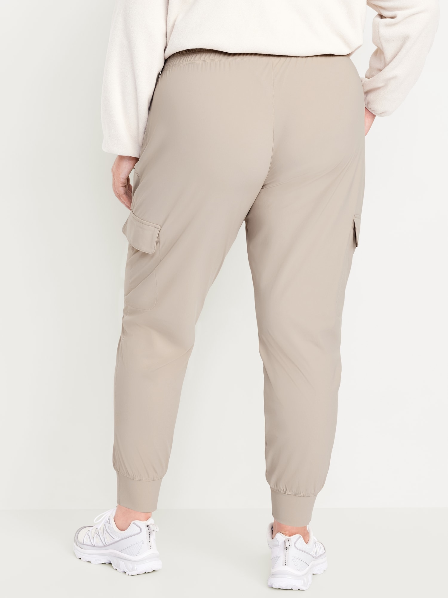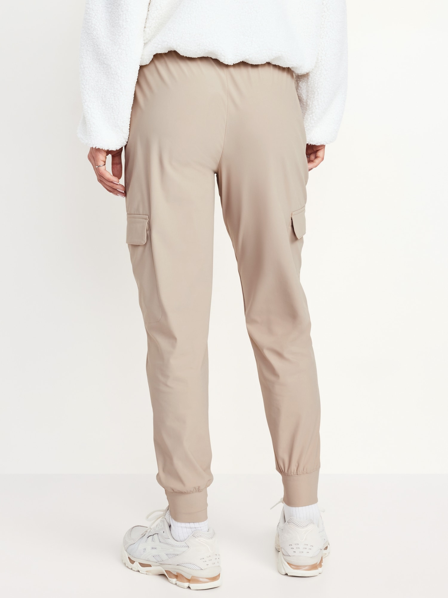 High-Waisted SleekTech Cargo Joggers: Featuring SleekTech. Polished and lightweight, with serious stretch.elastic waist, zippered hip pockets, flap-cargo pockets at thigh, go-dry wicks moisture, breathable, pull-on style, #569700