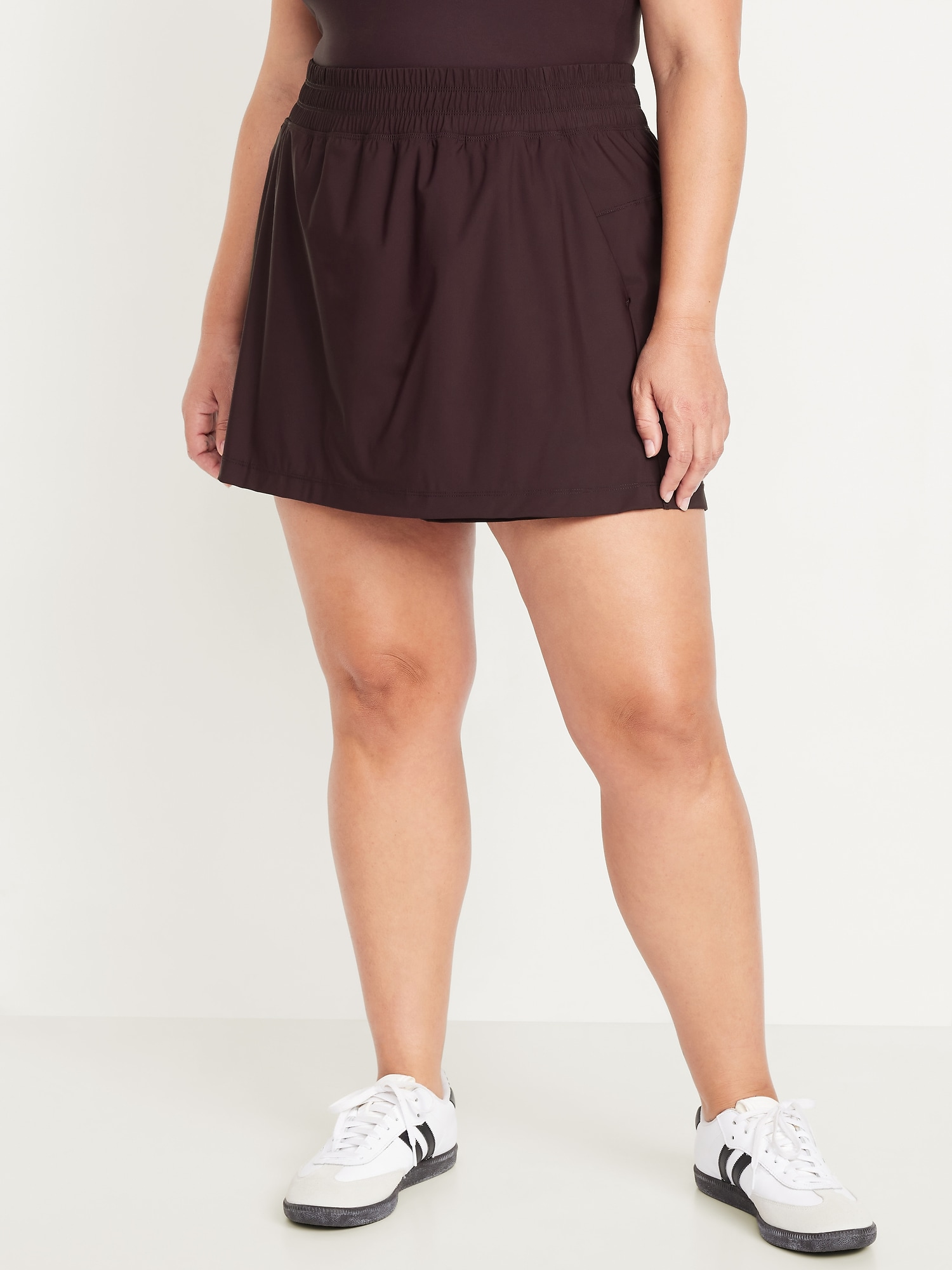 High-Waisted SleekTech Skort: Featuring SleekTech. Polished and lightweight, with serious stretch.elastic waist, diagonal front pockets, go-dry wicks moisture, breathable, #694168