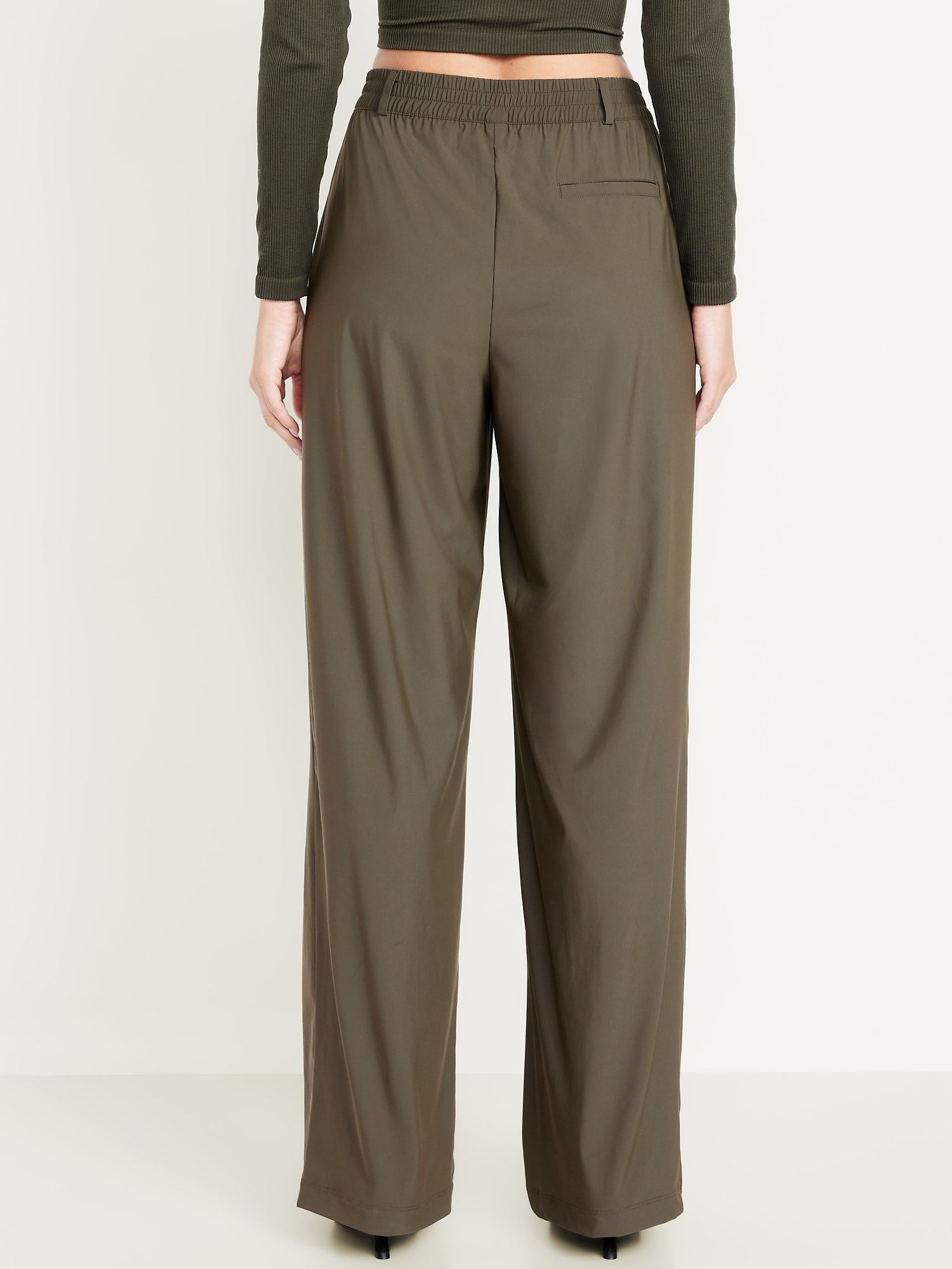 High-Waisted SleekTech Trouser Pants: Featuring SleekTech. Polished and lightweight, with serious stretch.high waist with belt loops, elastic back waist, functional zip fly, diagonal hip pockets, faux-welt back pocket, go-dry wicks moisture, #784434