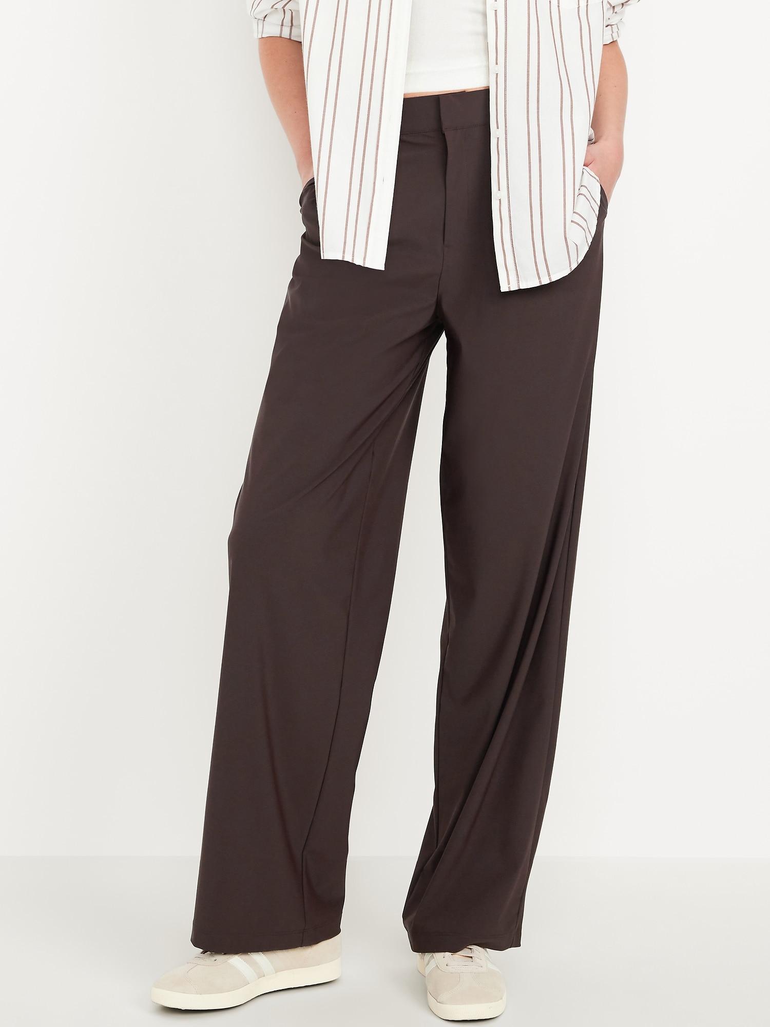 High-Waisted SleekTech Trouser Pants: Featuring SleekTech. Polished and lightweight, with serious stretch.high waist with belt loops, elastic back waist, functional zip fly, diagonal hip pockets, faux-welt back pocket, go-dry wicks moisture, #784434
