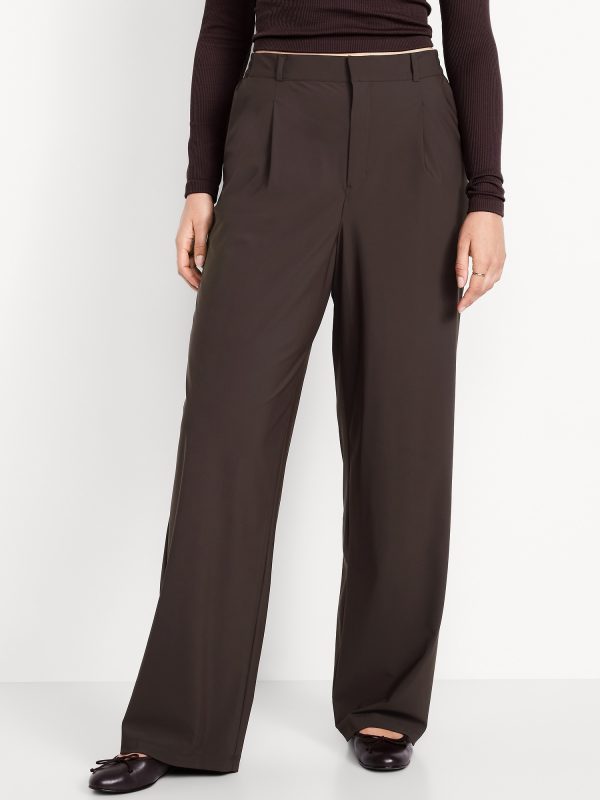 High-Waisted SleekTech Trouser Pants: Featuring SleekTech. Polished and lightweight, with serious stretch.high waist with belt loops, elastic back waist, functional zip fly, diagonal hip pockets, faux-welt back pocket, go-dry wicks moisture, #784434