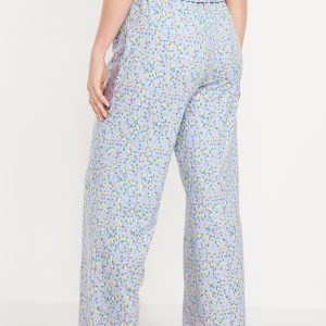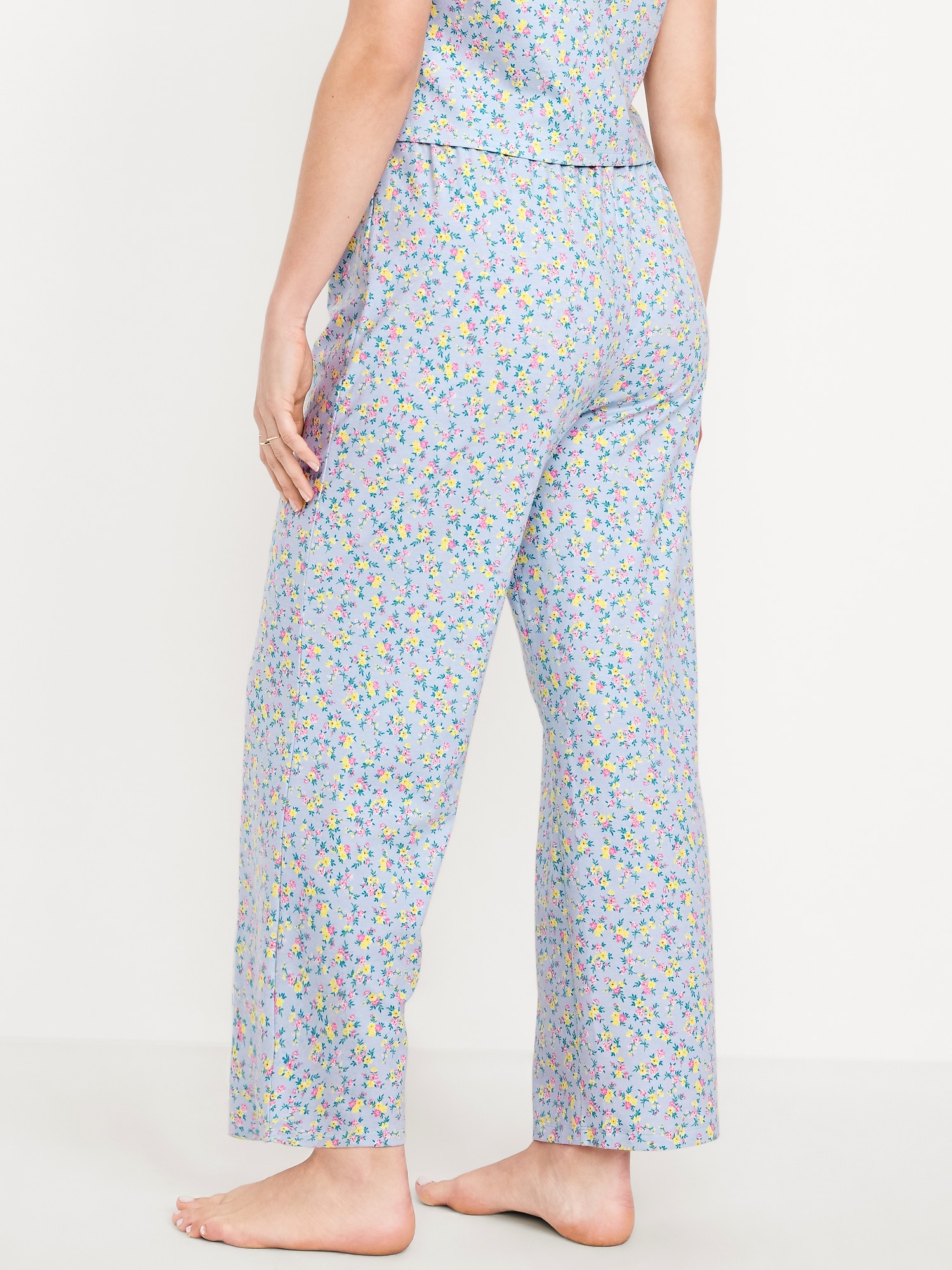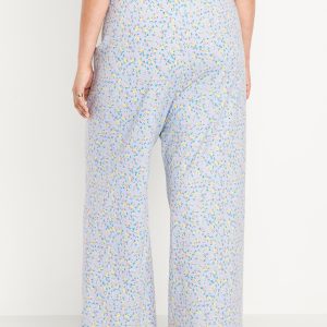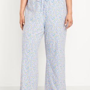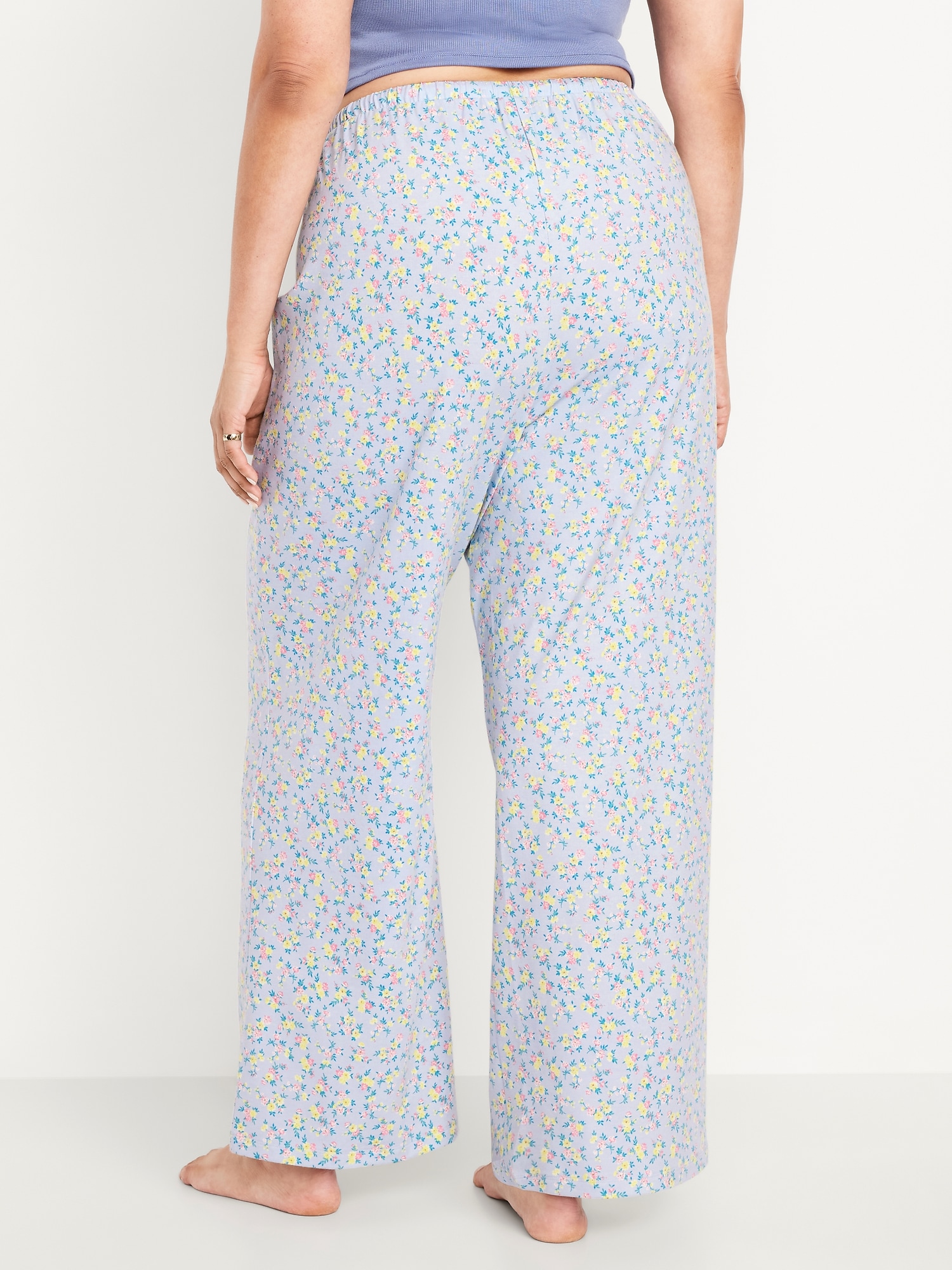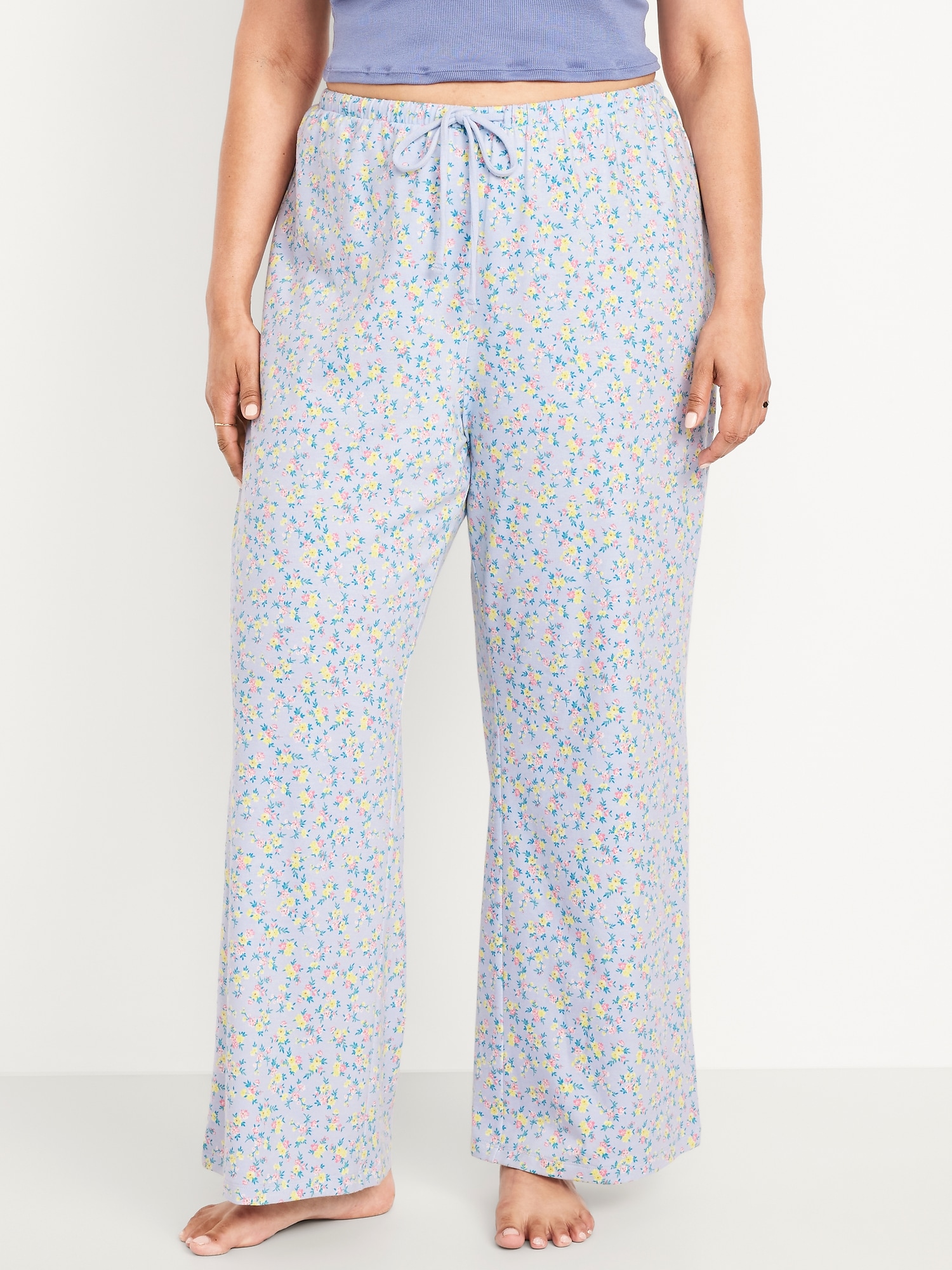 High-Waisted Slouchy Lounge Pants: elastic-drawstring waistband, slouchy barrel leg, pull-on style, floral print, #766757