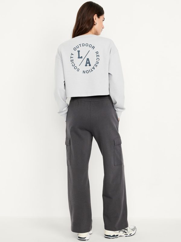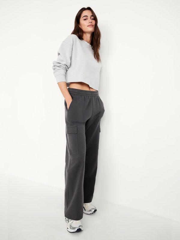 High-Waisted SoComfy Cargo Wide-Leg Sweatpants: The perfect-weight, never-taking-this-off fleece.high elastic waistband, front pockets, flap-cargo pockets at thigh, wide leg, pull-on style, #764226