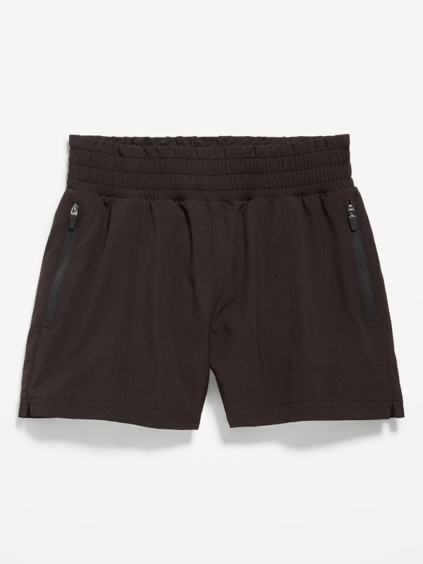 High-Waisted StretchTech Performance Shorts for Girls: high rise, elasticized waistband, zippered welt pockets, front seams, #762166