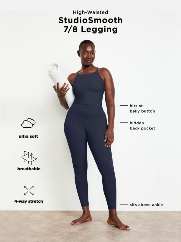High-Waisted StudioSmooth 7/8 Leggings: Featuring StudioSmooth. Buttery soft and breathable, with a barely-there feel.elasticized waistband, hidden back pocket, go-dry wicks moisture, breathable, #662879
