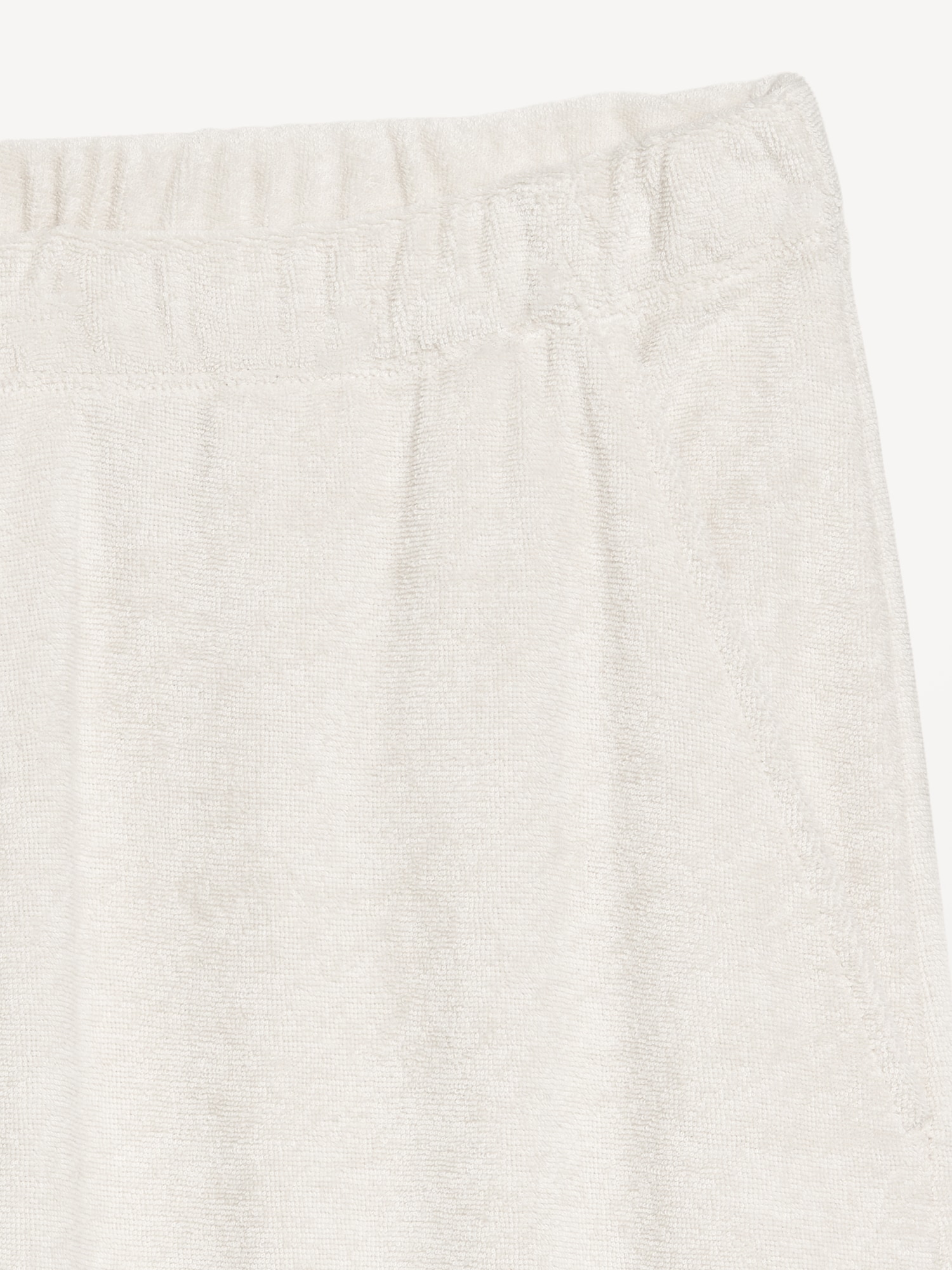 High-Waisted Towel Terry Barrel Ankle Pants: elastic waistband, on-seam pockets, cuffed barrel leg, #749658