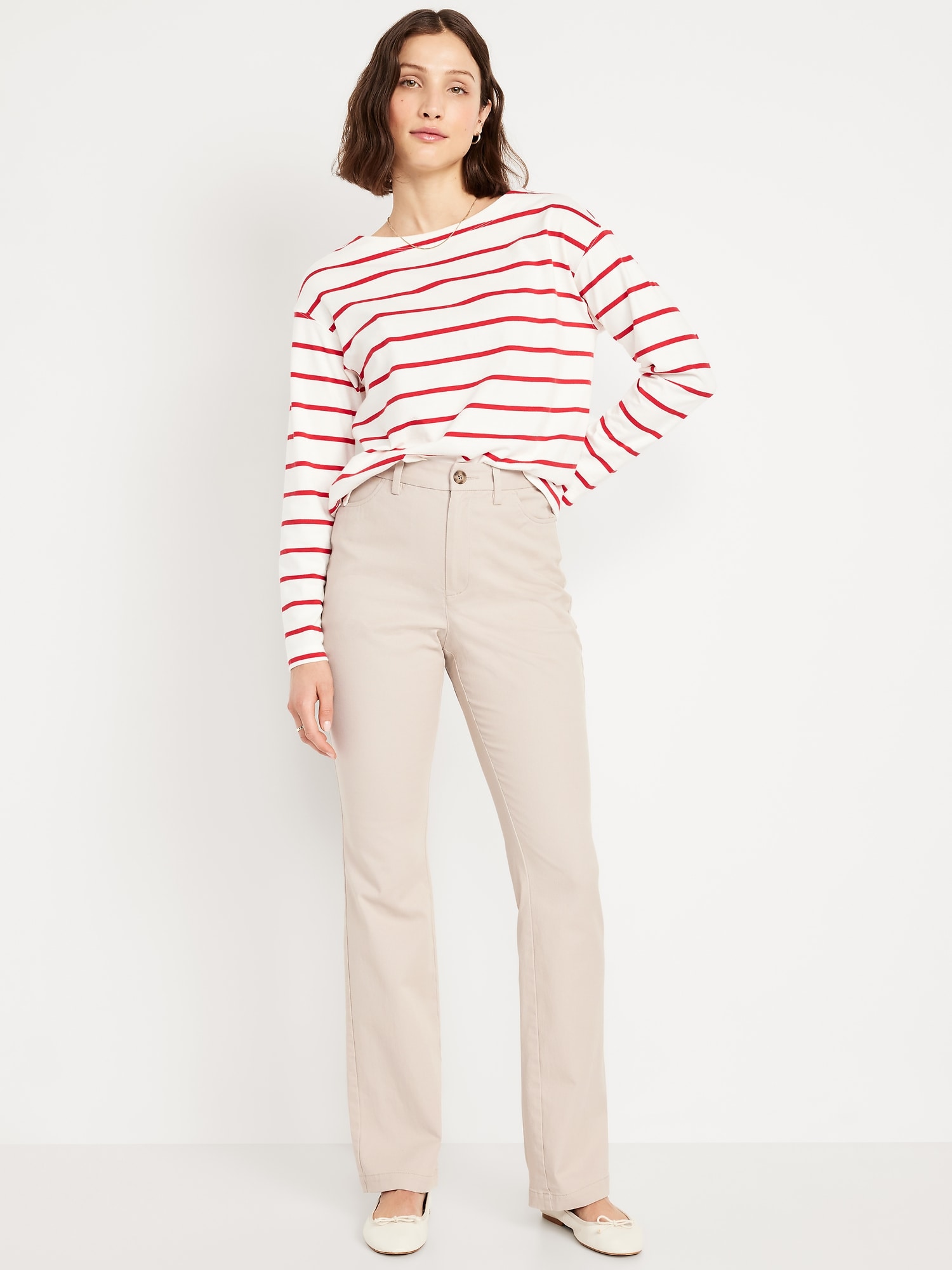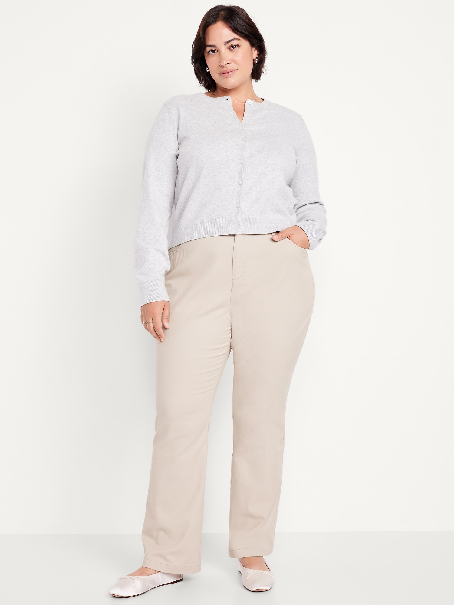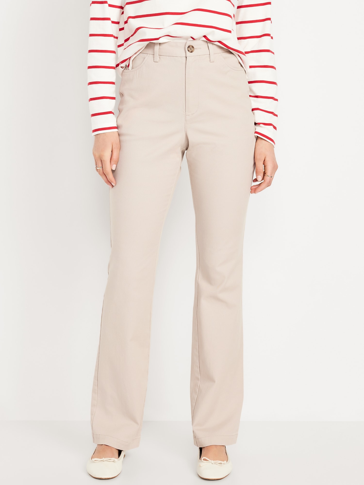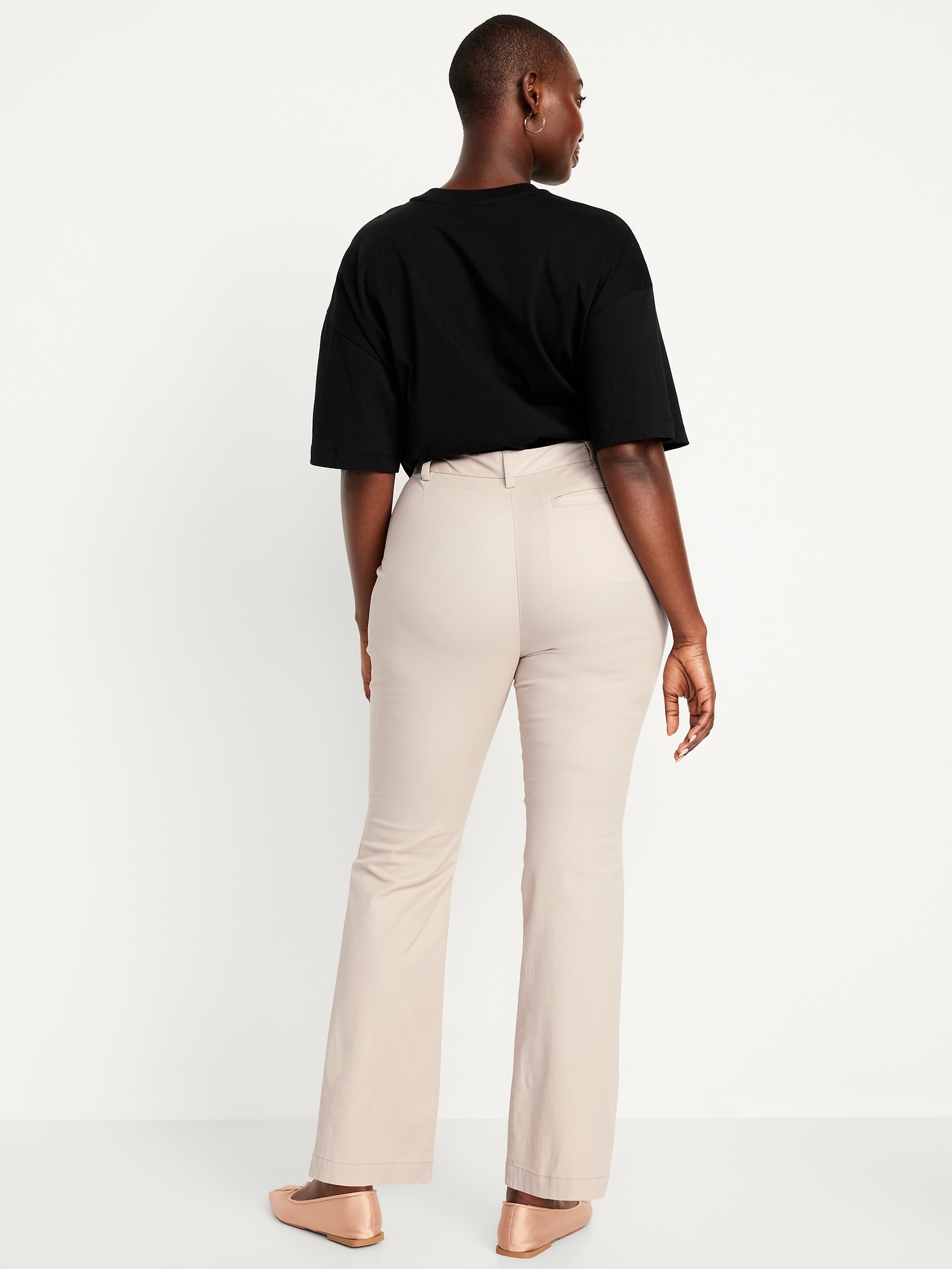 High-Waisted Uniform Boot-Cut Pants: zip fly, front scoop pockets, back right welt pocket, darted back waist, boot-cut leg, #771879