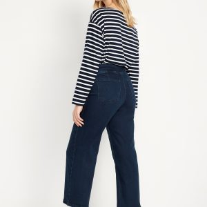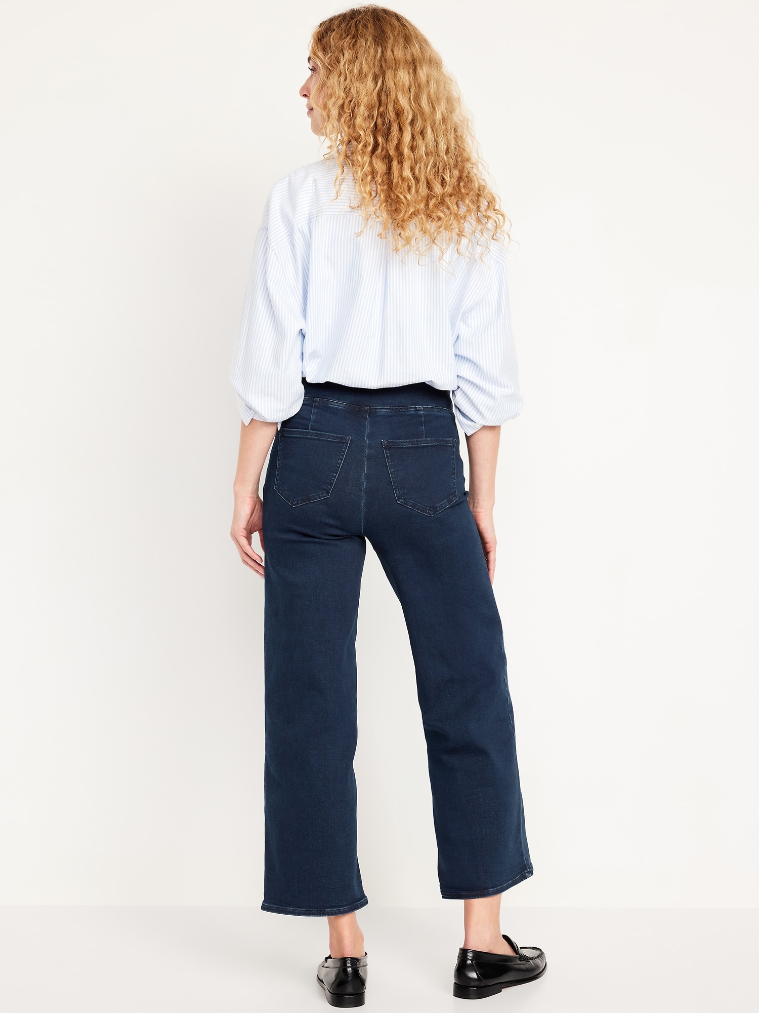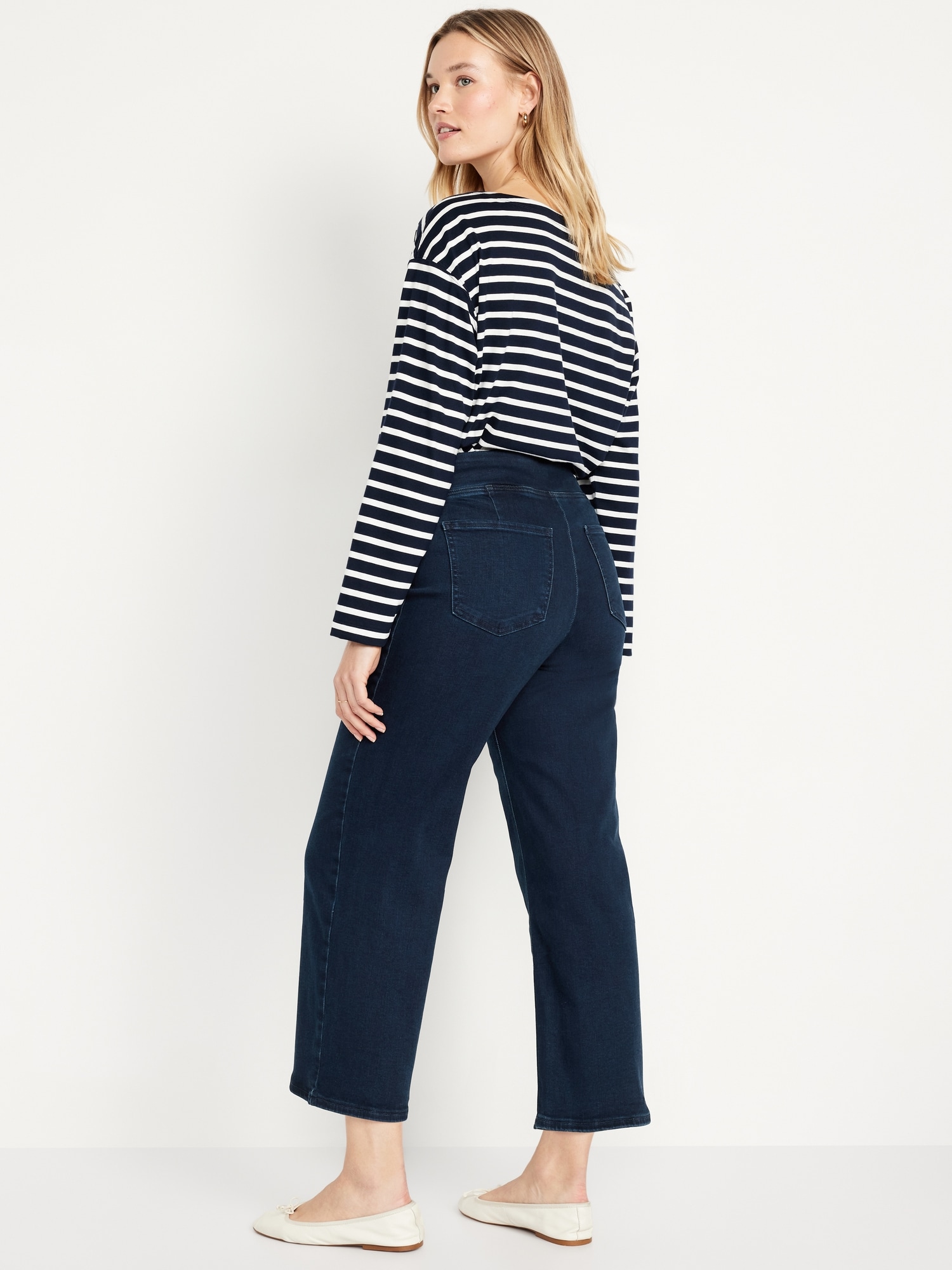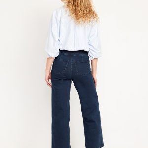 High-Waisted Weekender Pull-On Crop Wide-Leg Jeans: pull-on high waistband, back patch pockets, wide leg, #584276