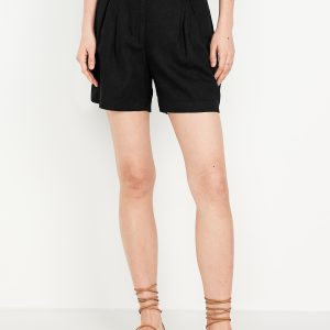 High-Waisted Wow Jean Shorts — 5-inch inseam: button front, zip fly, zip fly, front scoop pockets, back patch pockets, cuffed hem, #849408