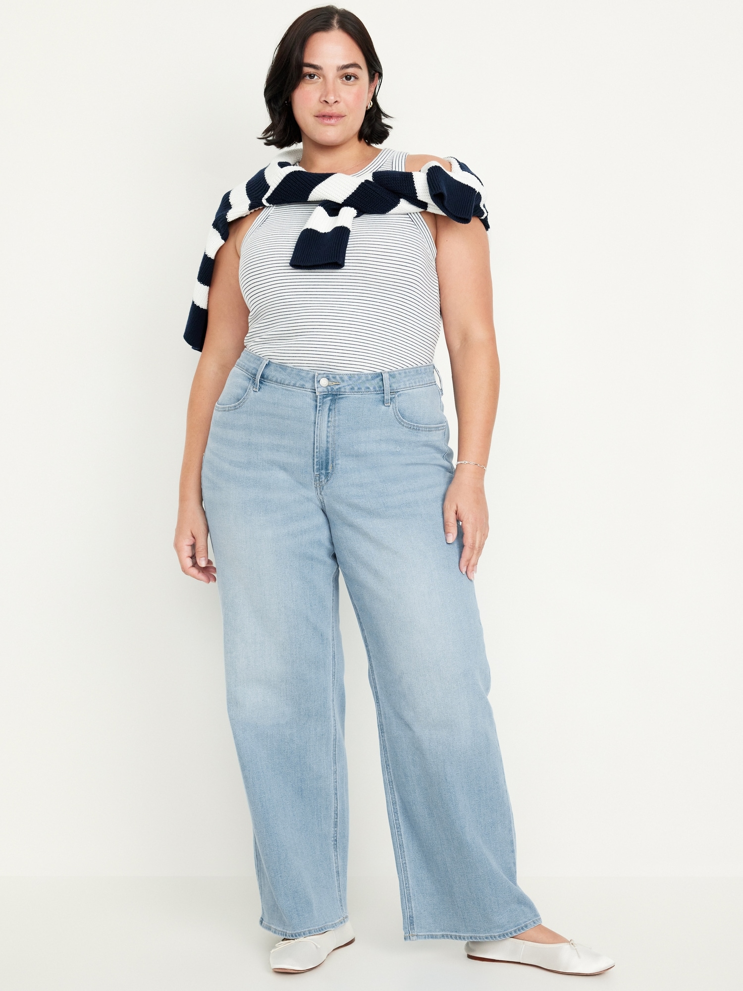 High-Waisted Wow Wide-Leg Jeans: A roomy wide leg at a jaw-dropping price.zip fly, front scoop pockets, back patch pockets, #849357