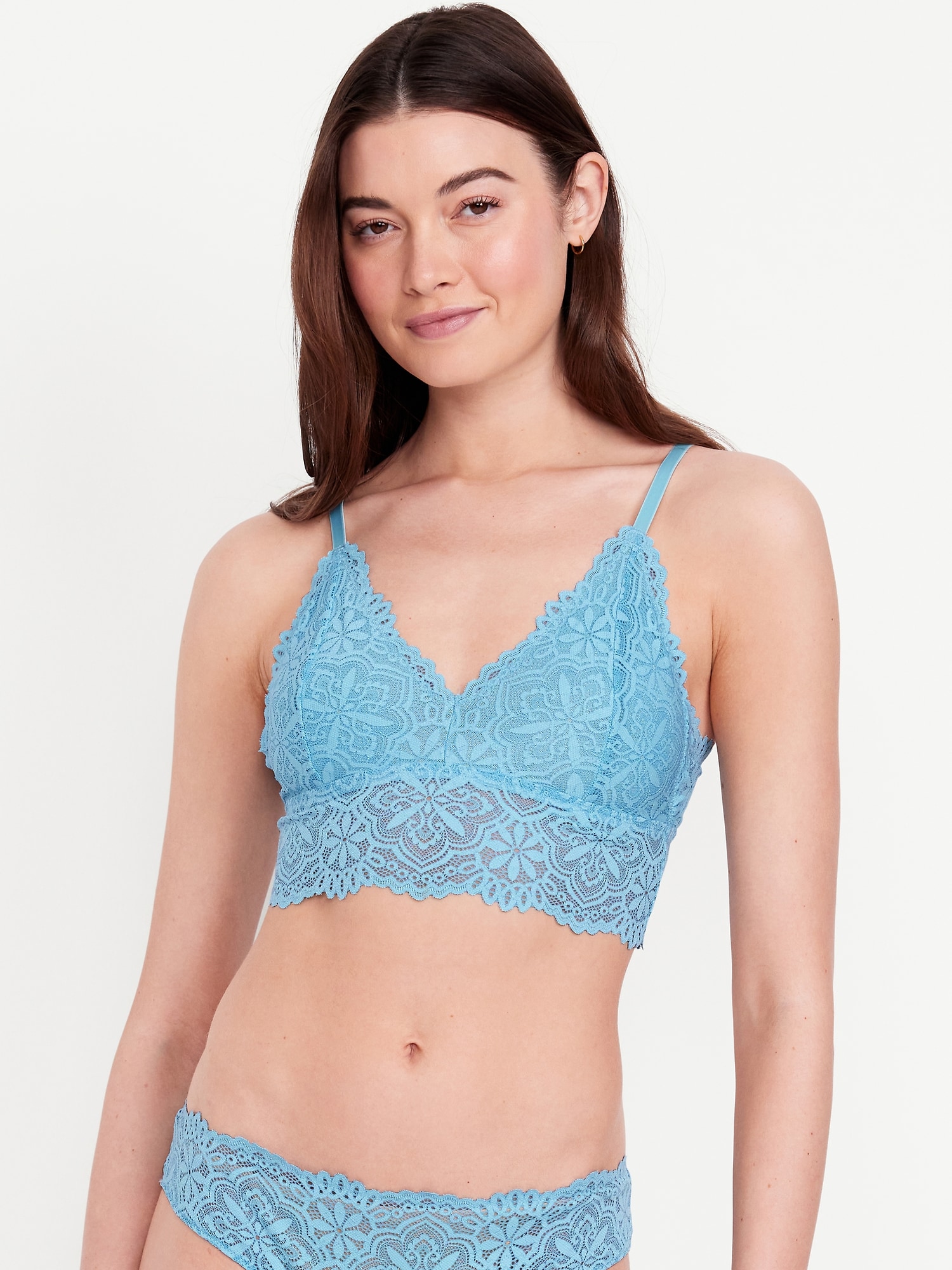 Lace Longline Bralette: deep v-neck, adjustable straps, fully lined, #486674