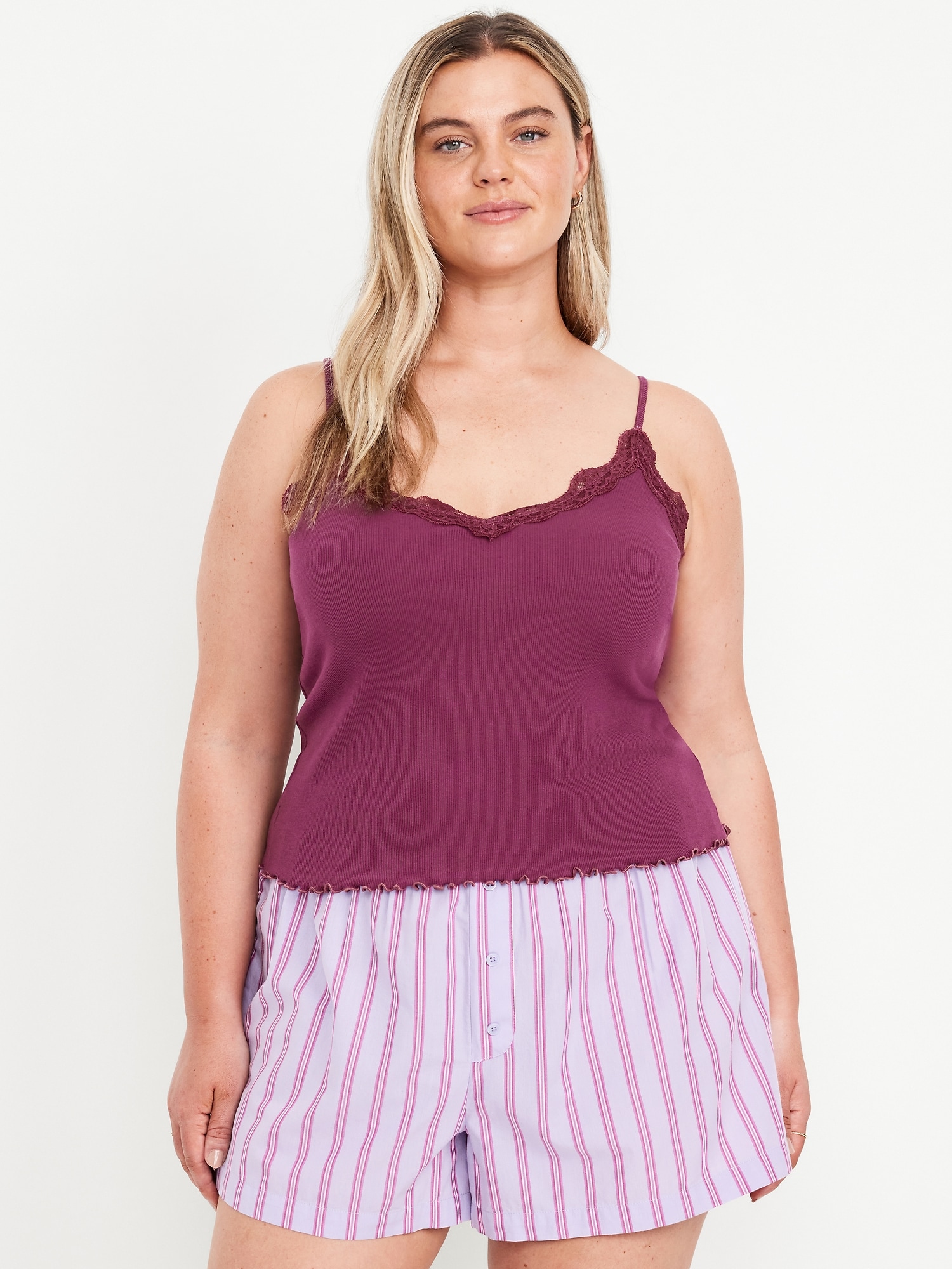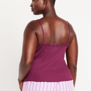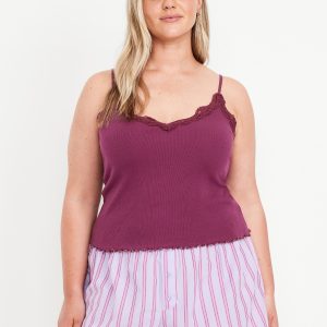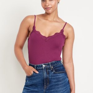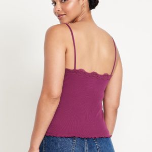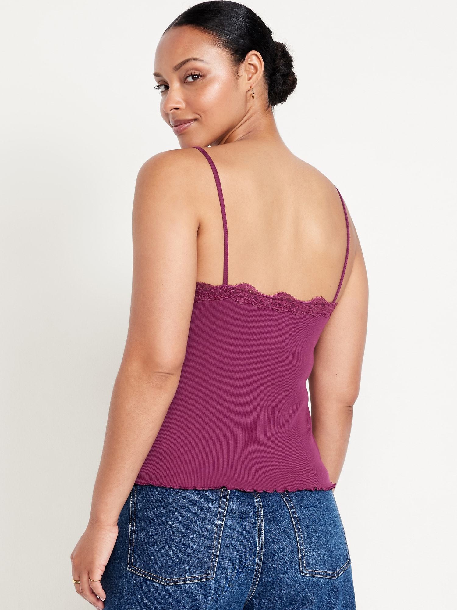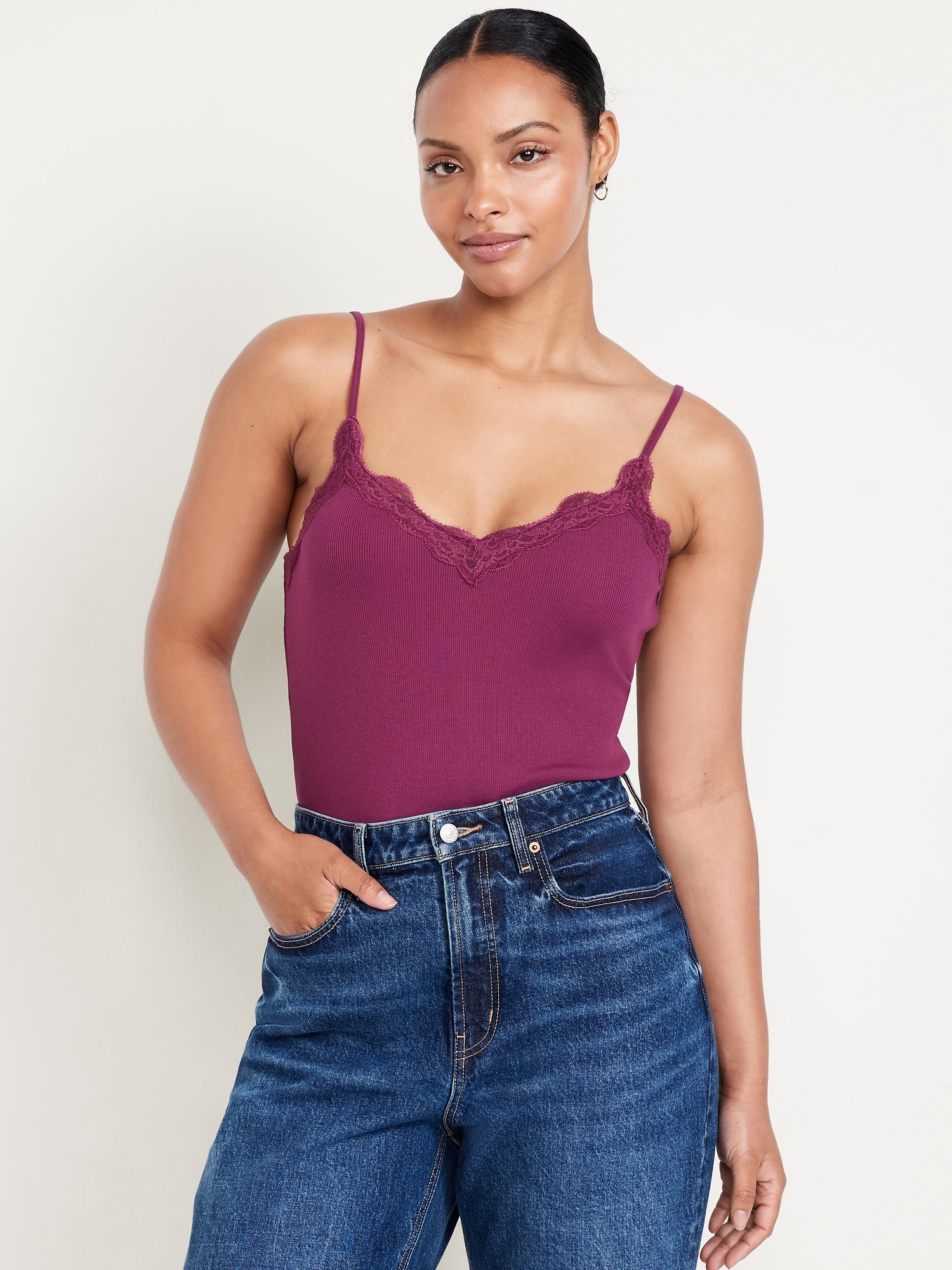 Lace-Trim Cami Tank Top: lace-trim v-neck, adjustable straps, #749270