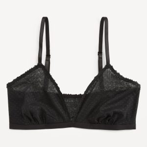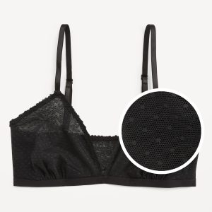 Lace-Trim Dot-Mesh Bralette: plunging v-neck, adjustable straps, brushed elastic hem, #800569