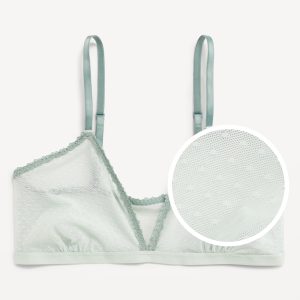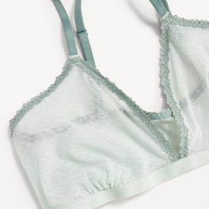 Lace-Trim Dot-Mesh Bralette: plunging v-neck, adjustable straps, brushed elastic hem, #800569